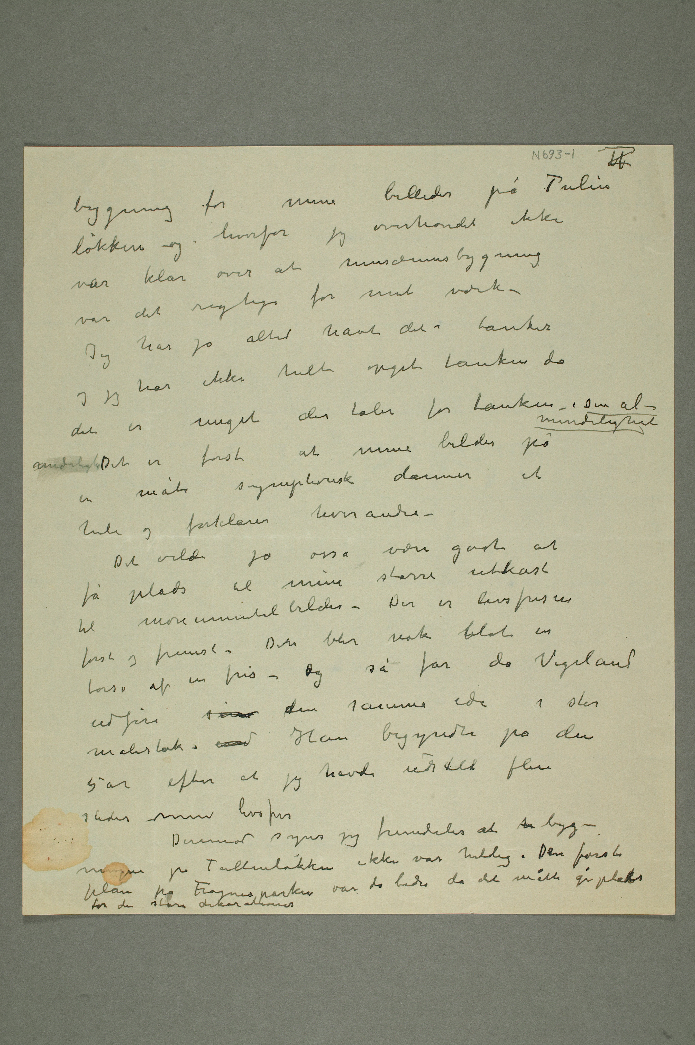 MM N 693, Munchmuseet. Ikke datert. Brevutkast til Jens Thiis.