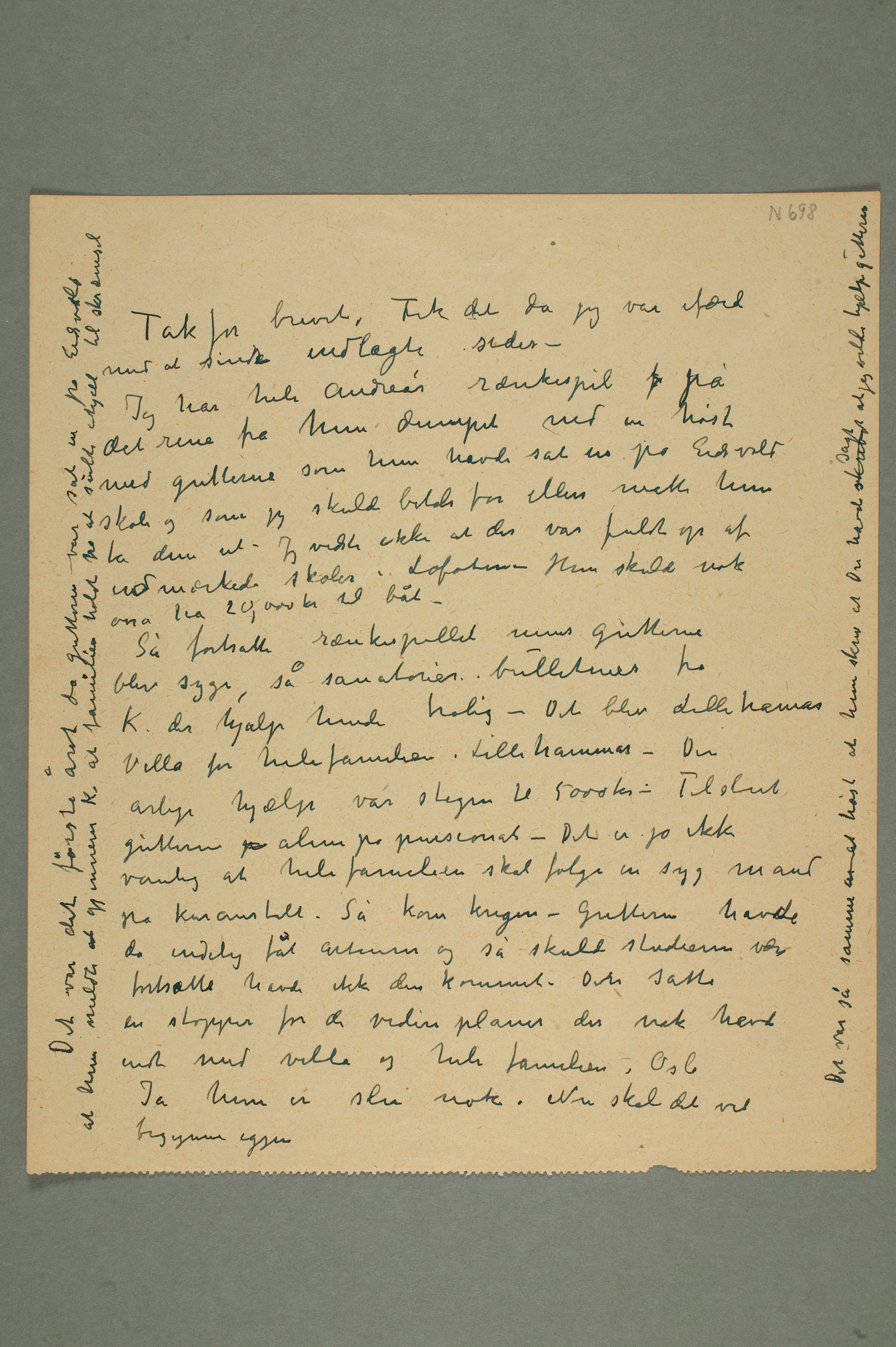 MM N 698, Munchmuseet. Ikke datert. Brevutkast til Inger Munch.