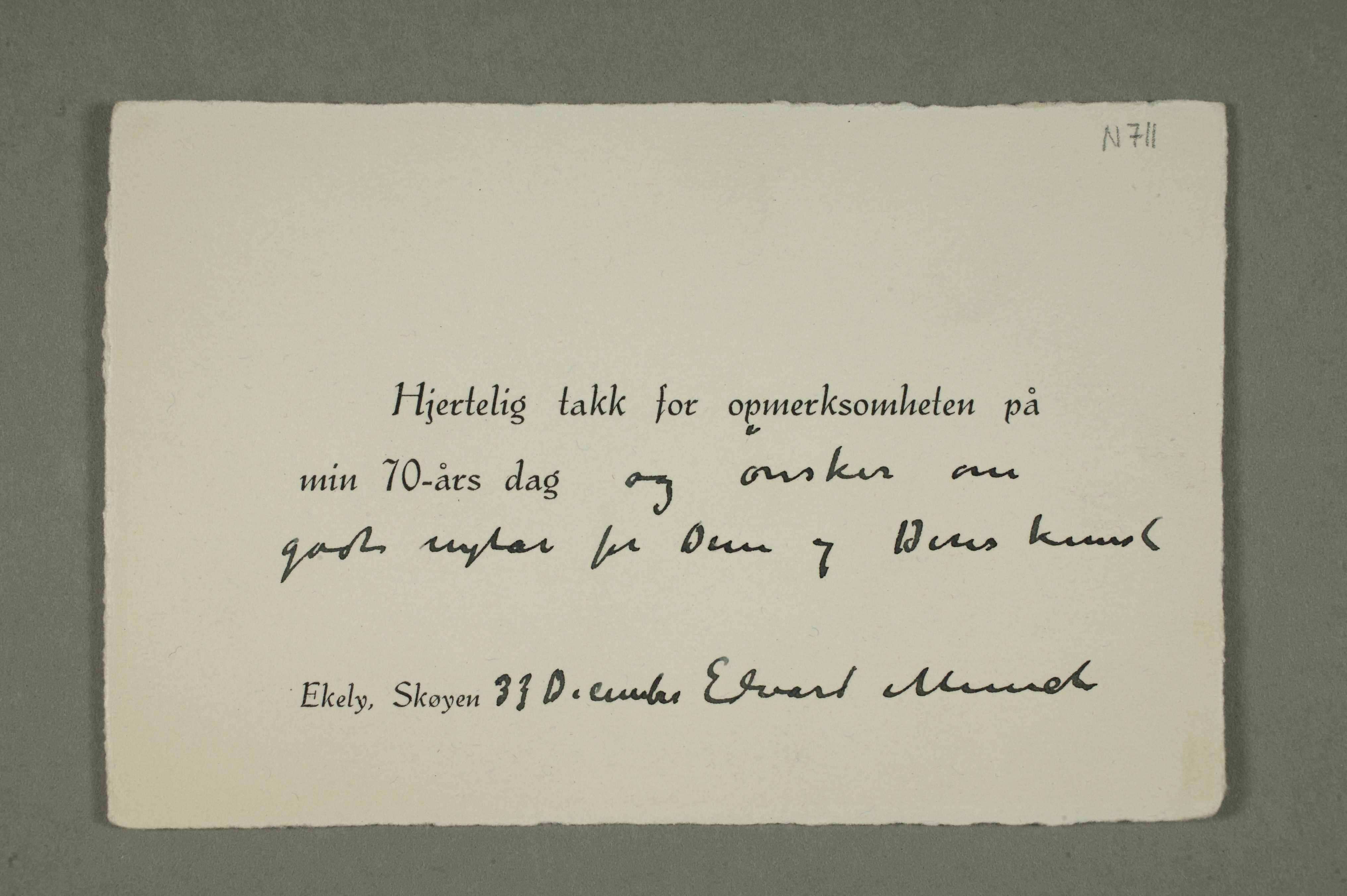 MM N 711, Munchmuseet. Datert 31.12.1933. Brev til Uidentifisert person