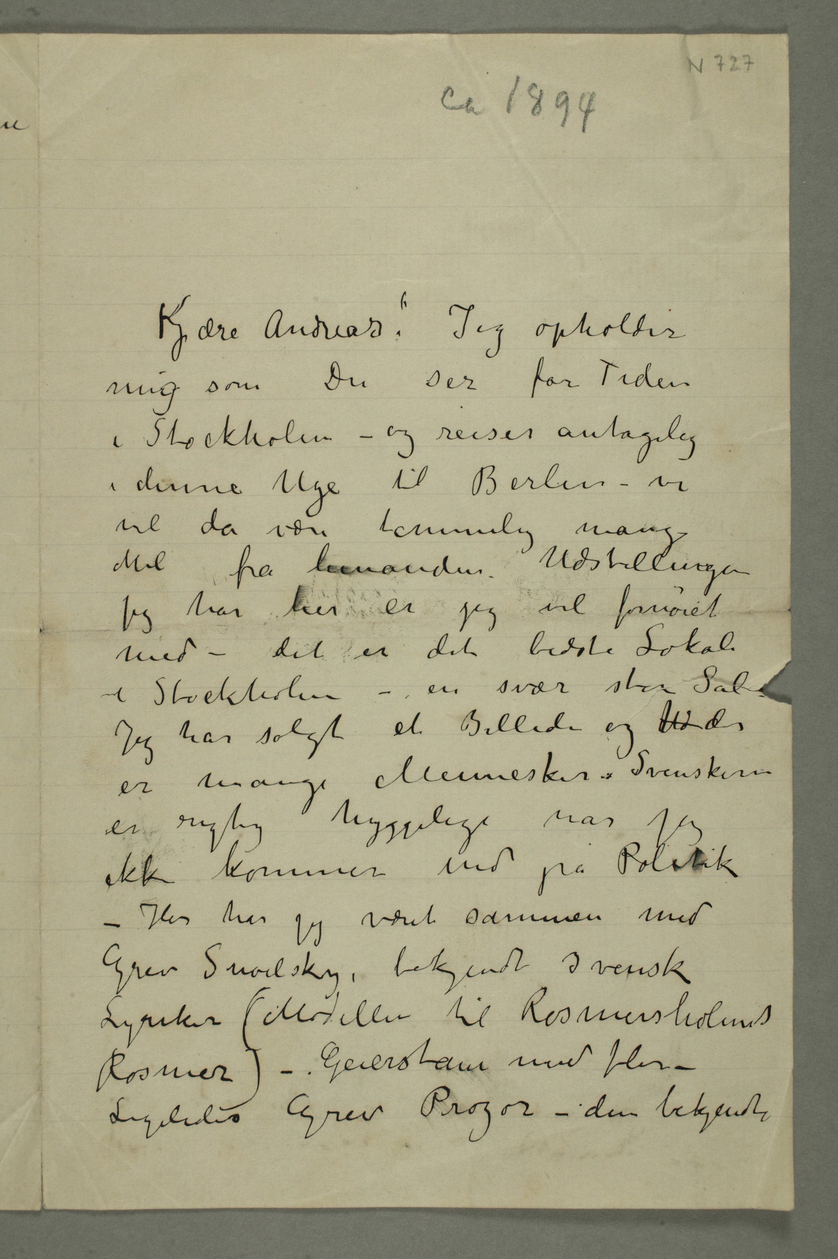 MM N 727, Munchmuseet. Datert 1894. Brev til Andreas Munch