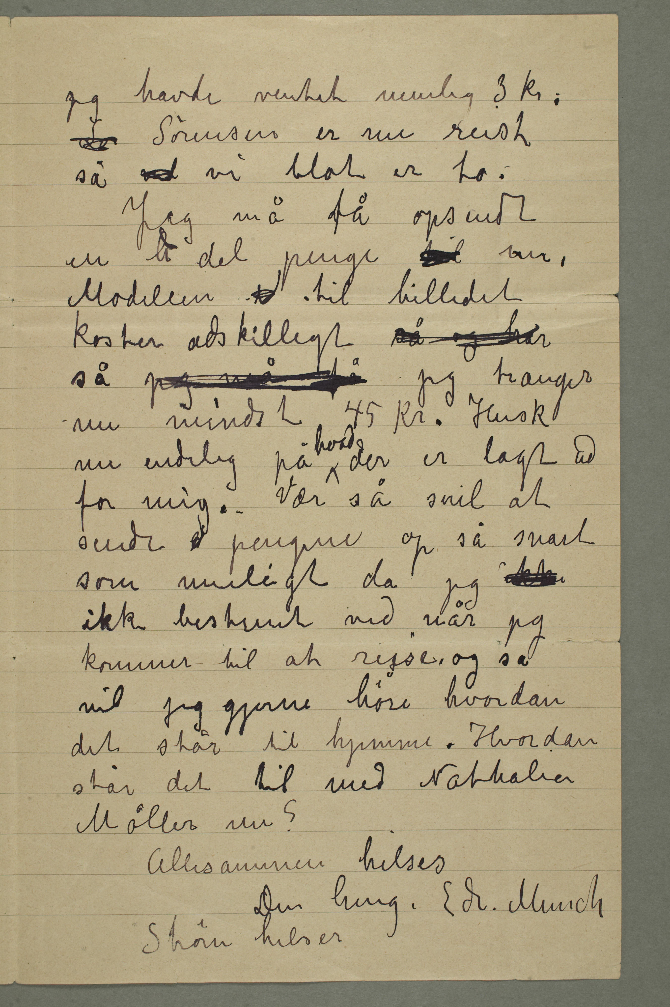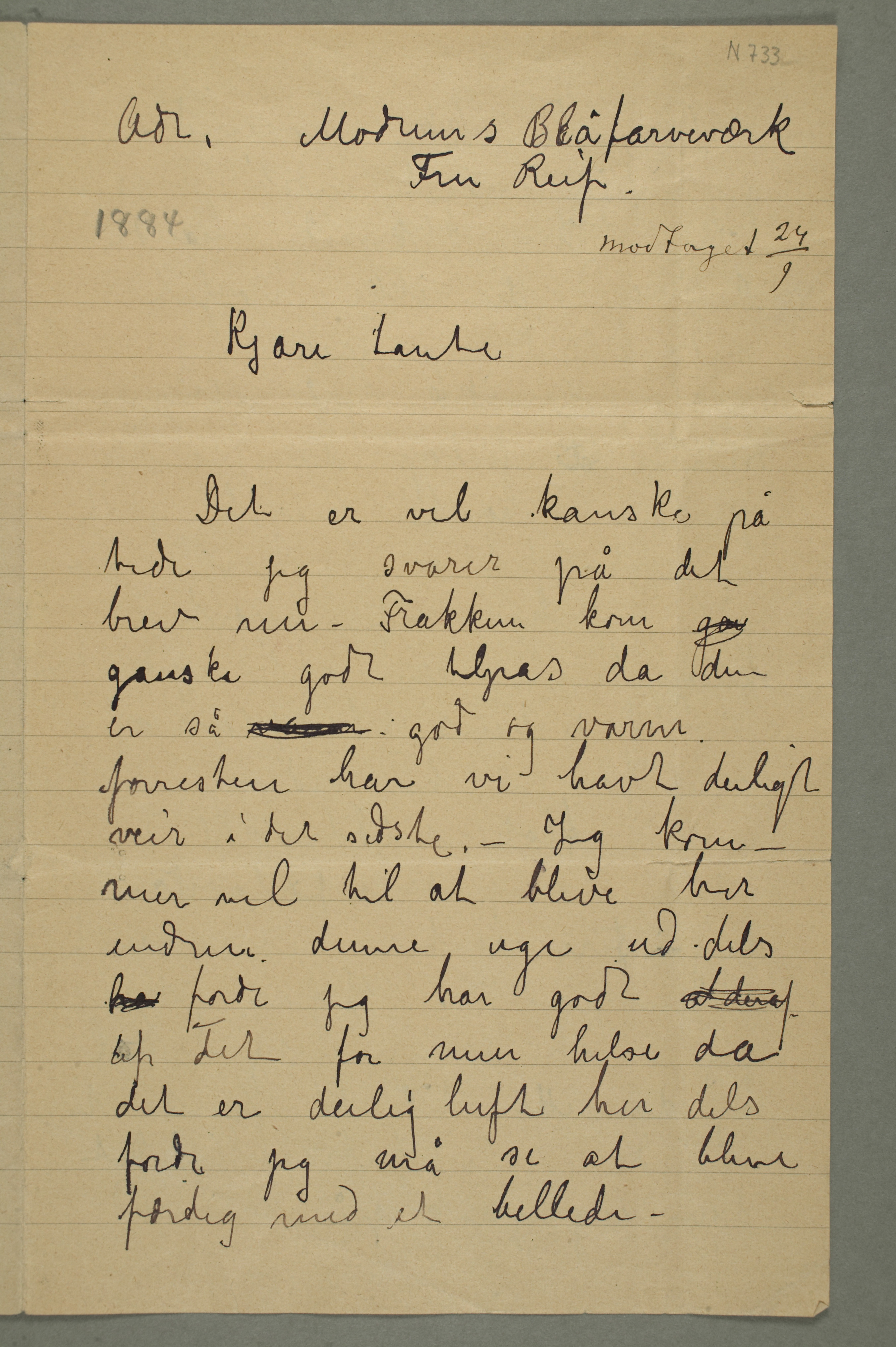 MM N 733, Munchmuseet. Datert 1884 . Brev til Karen Bjølstad