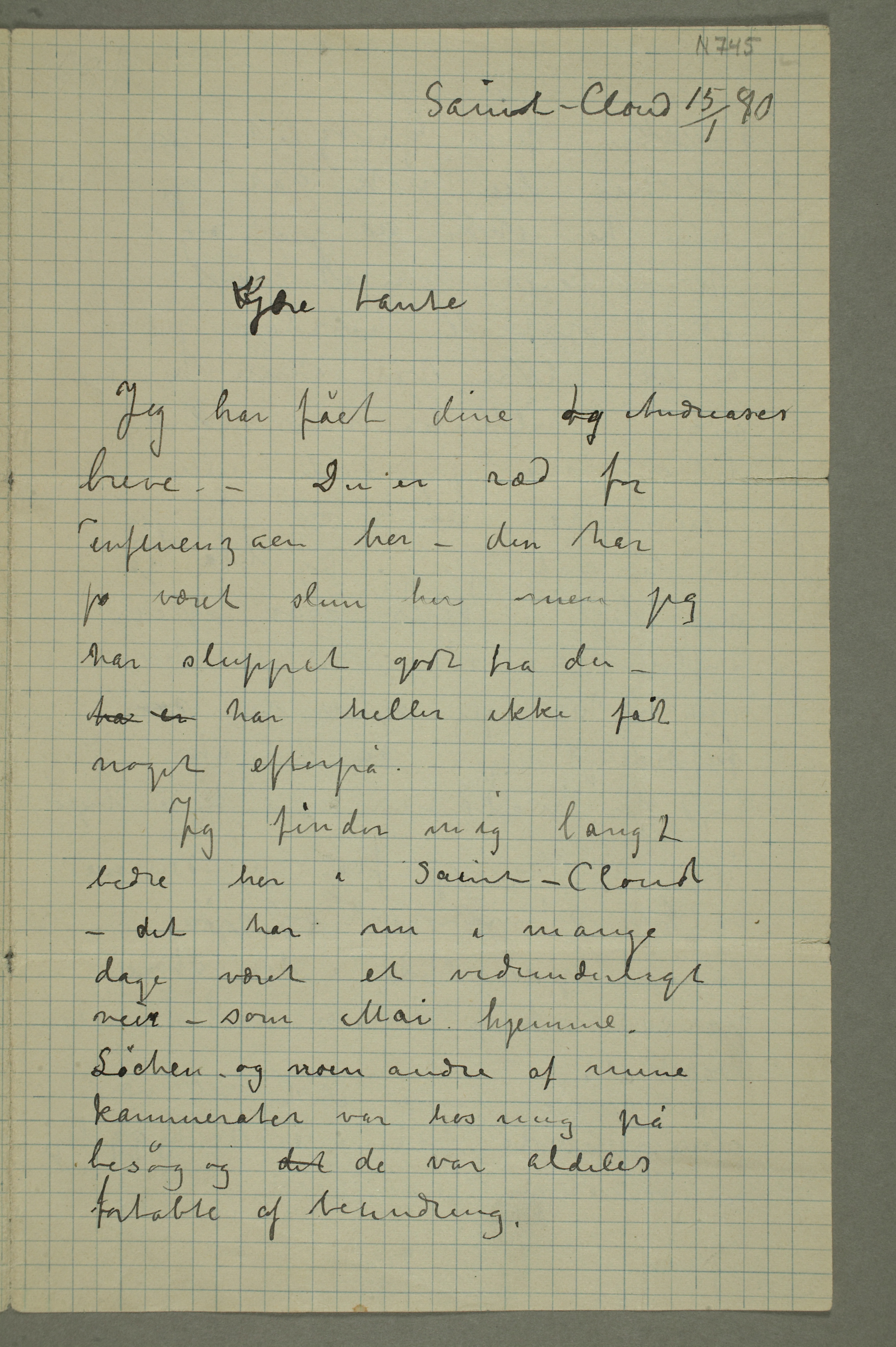 MM N 745, Munchmuseet. Datert 15.1.1890. Brev til Karen Bjølstad