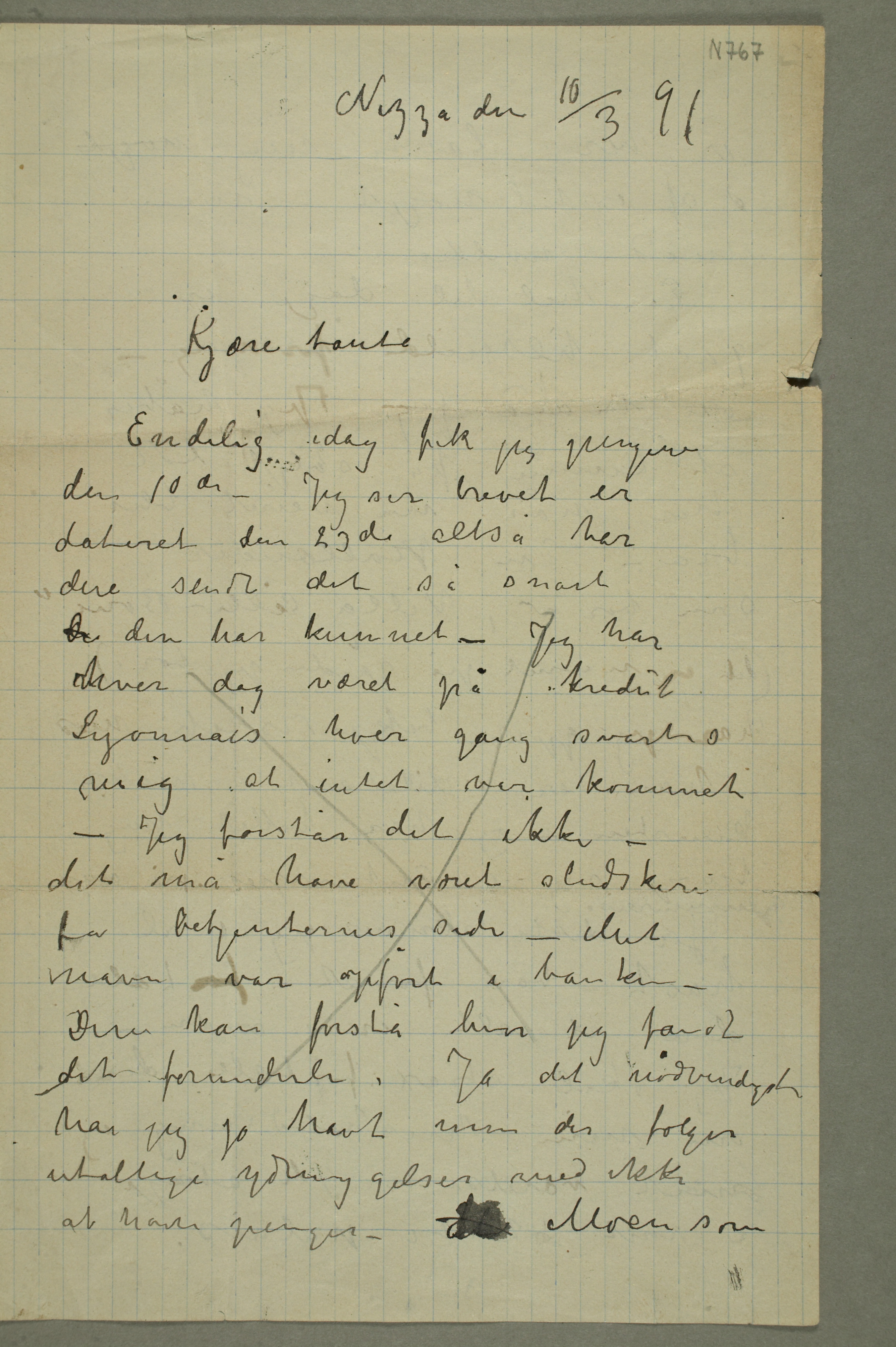 MM N 767, Munchmuseet. Datert 10.3.1891. Brev til Karen Bjølstad