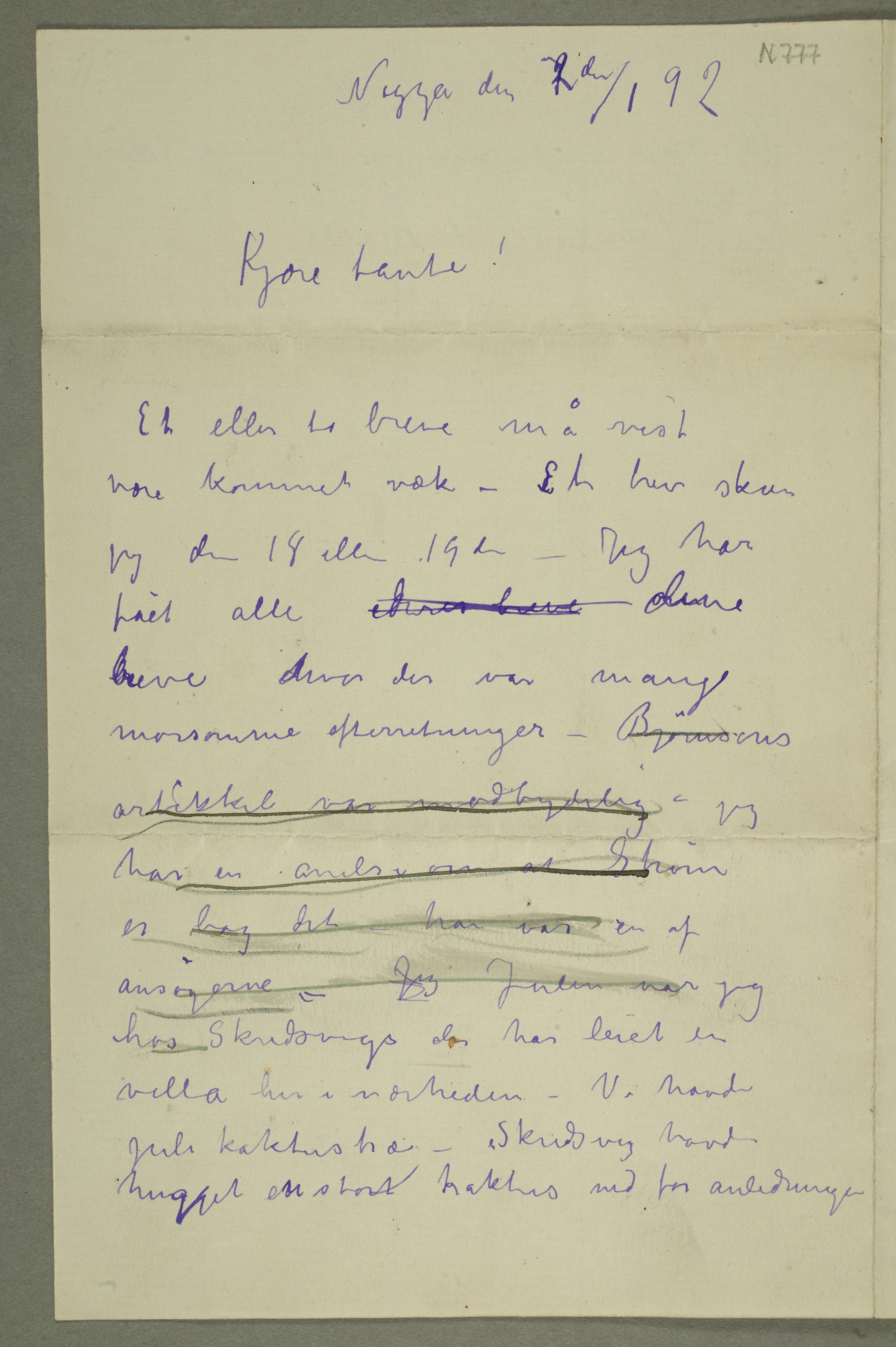 MM N 777, Munchmuseet. Datert 2.1.1892. Brev til Karen Bjølstad