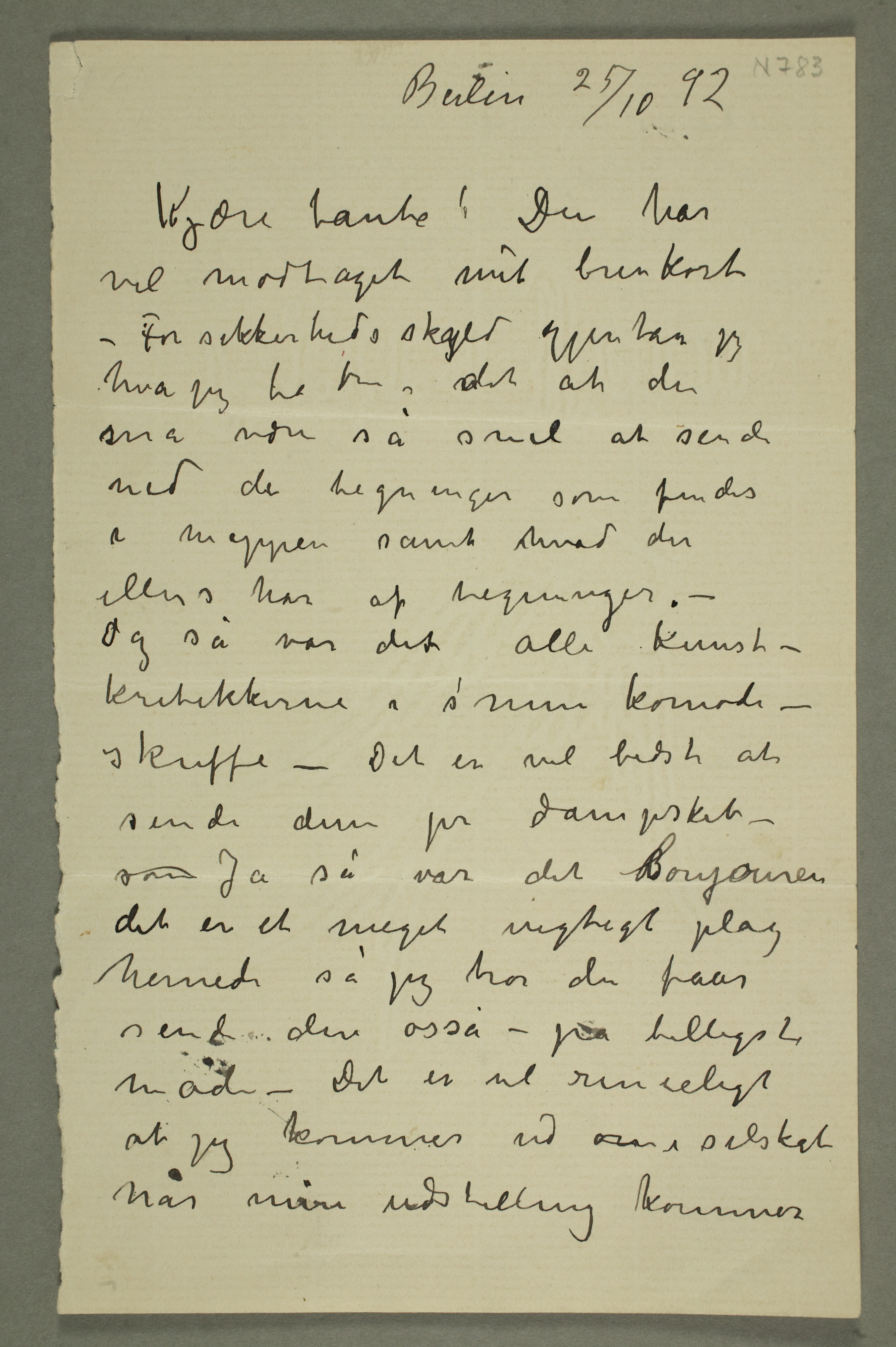 MM N 783, Munchmuseet. Datert 25.10.1892. Brev til Karen Bjølstad