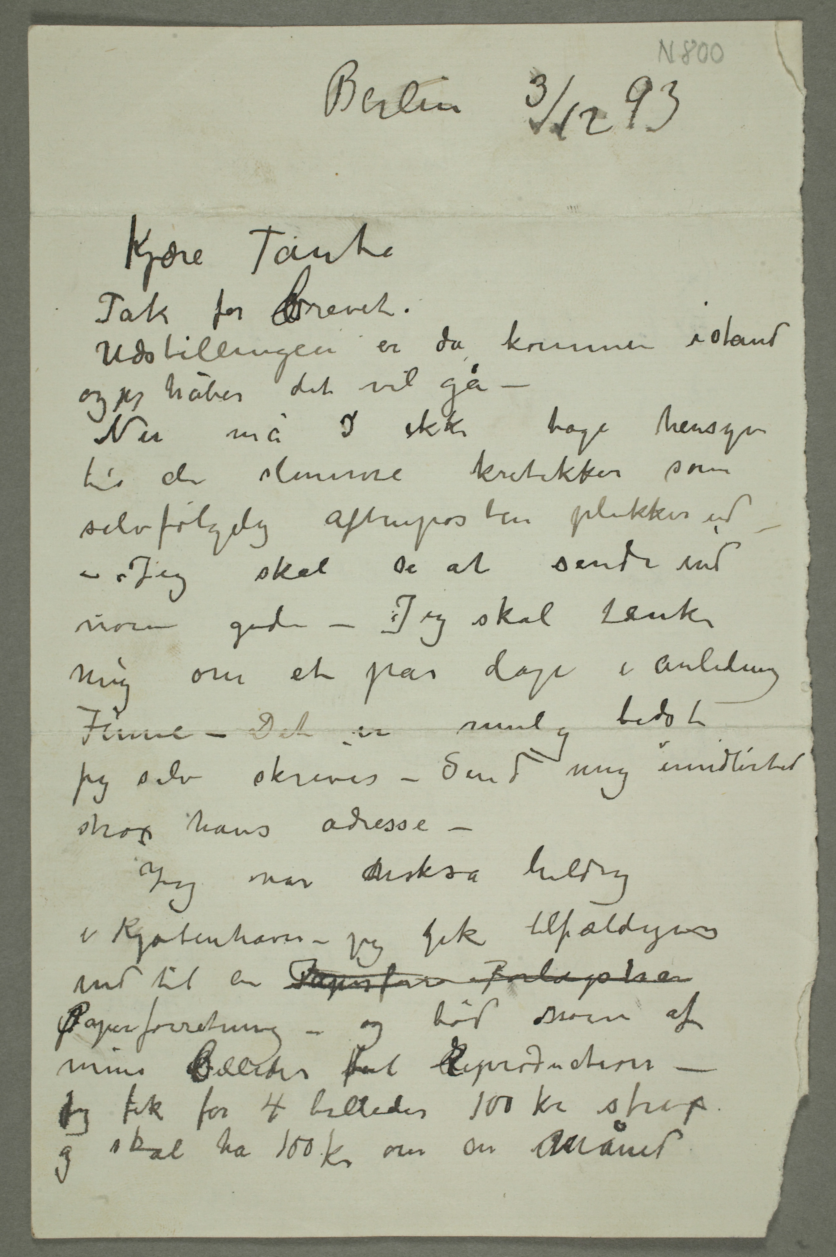 MM N 800, Munchmuseet. Datert 3.12.1893. Brev til Karen Bjølstad