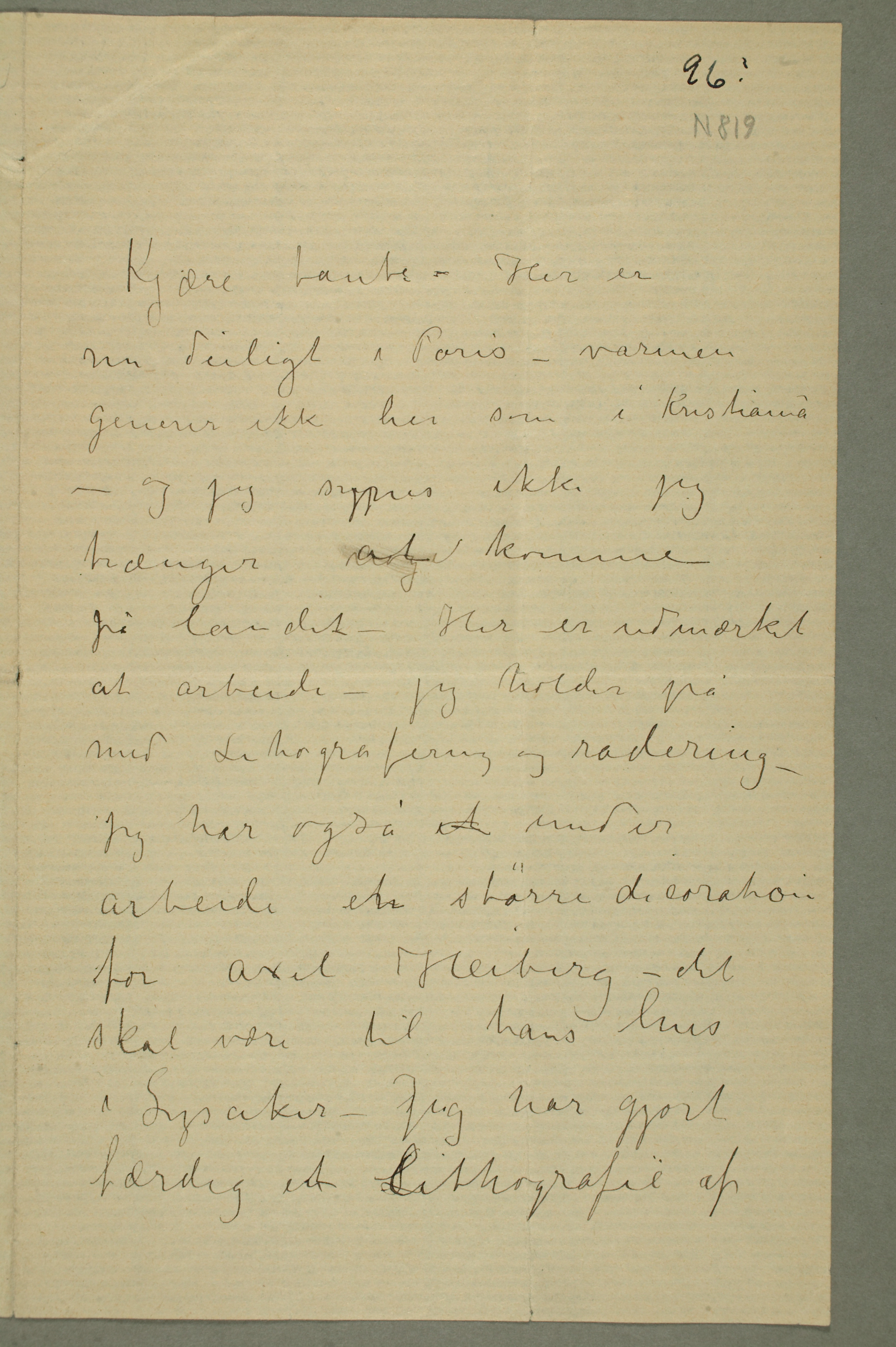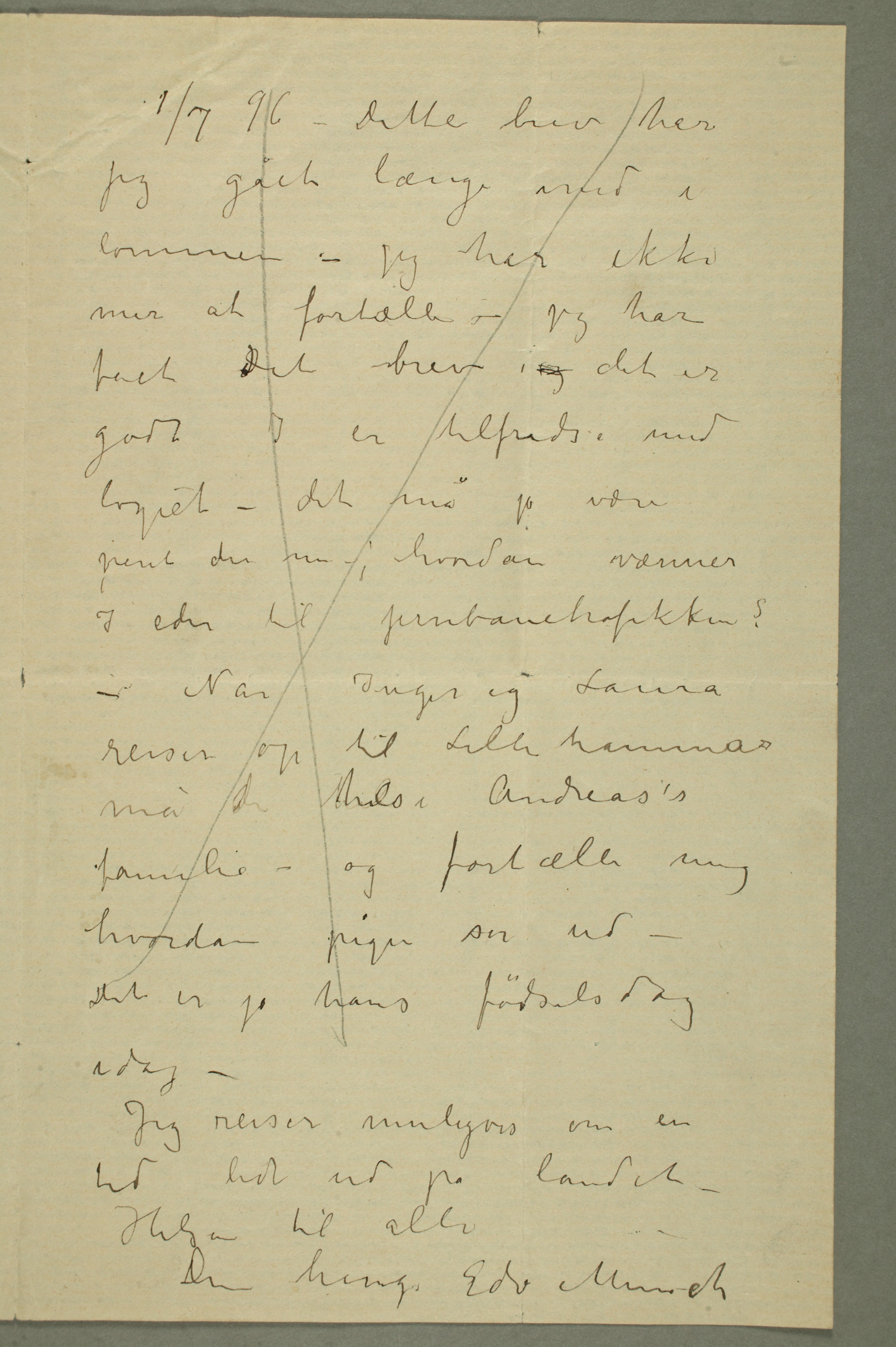 MM N 819, Munchmuseet. Datert 1.7.1896. Brev til Karen Bjølstad