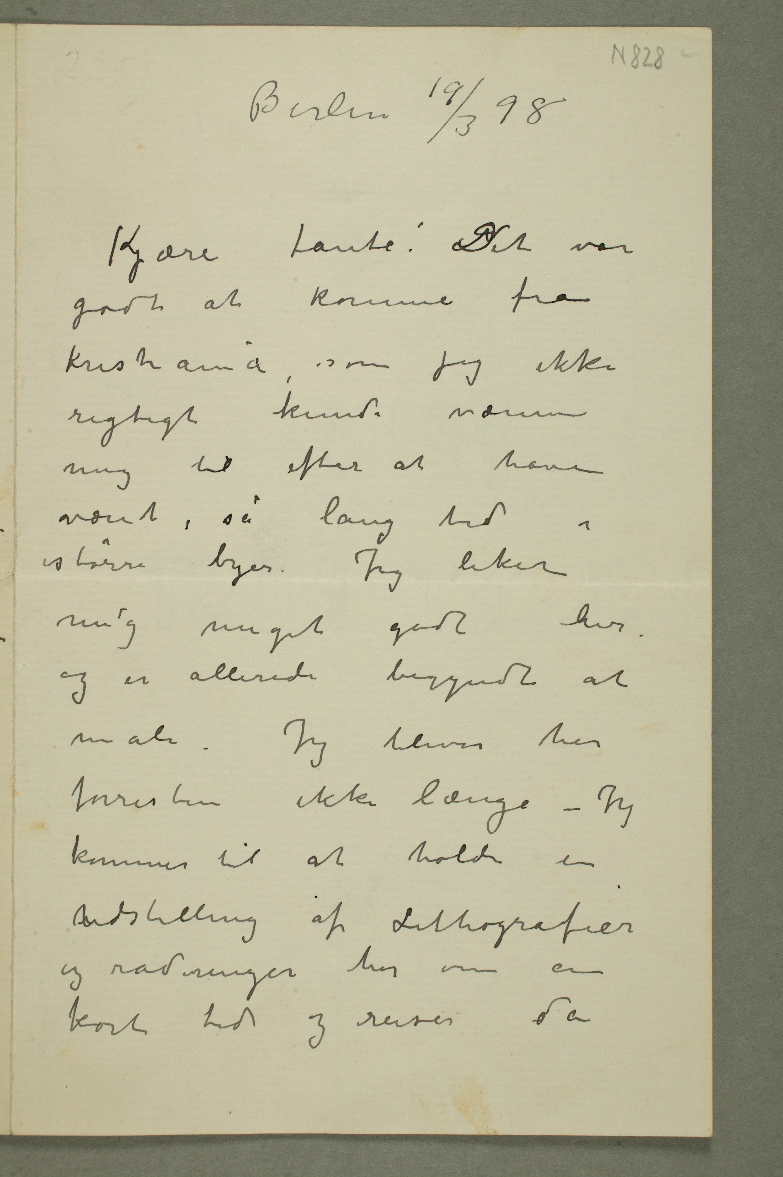 MM N 828, Munchmuseet. Datert 19.3.1898. Brev til Karen Bjølstad