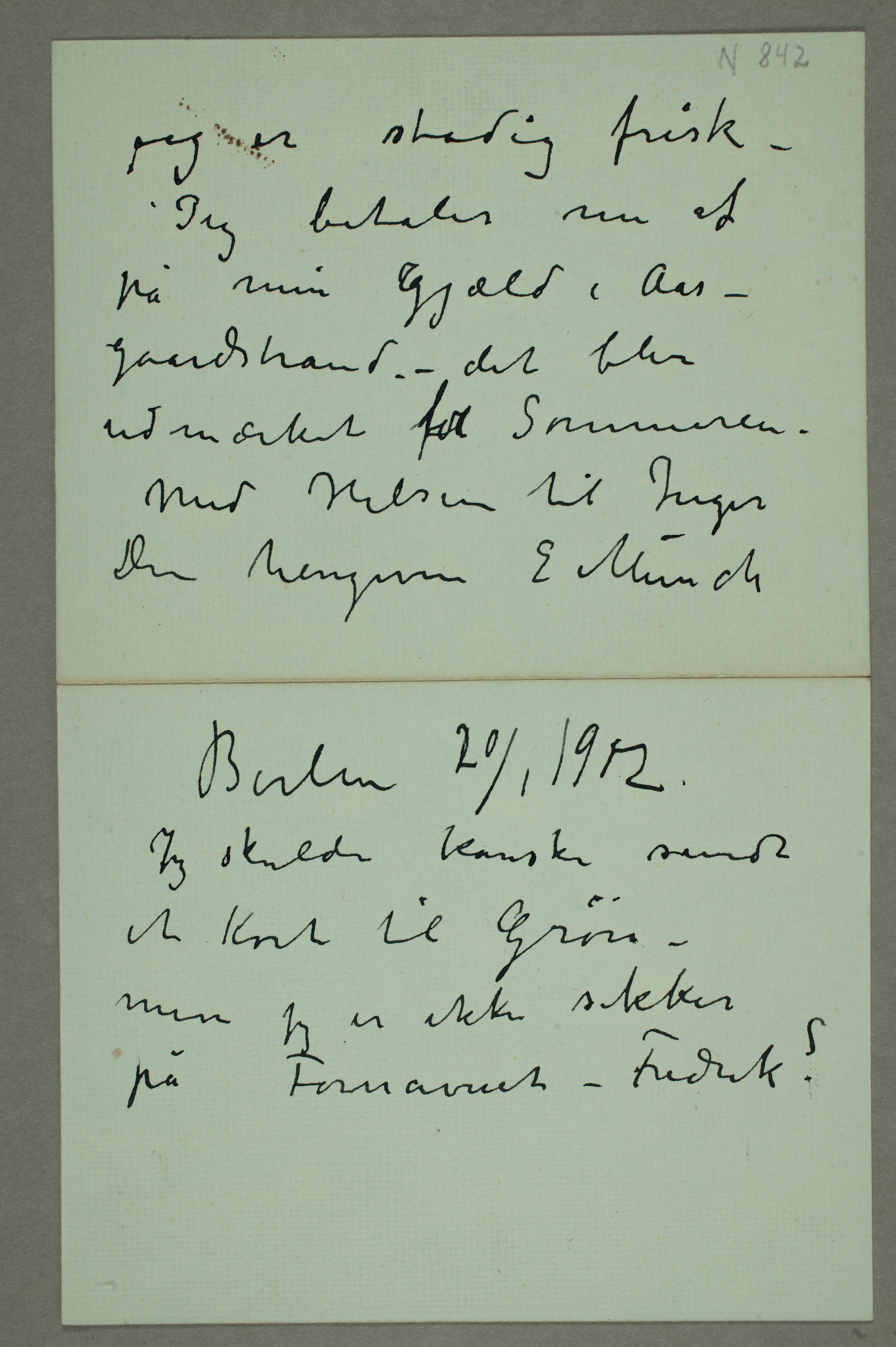 MM N 842, Munchmuseet. Datert 20.1.1902. Brev til Karen Bjølstad
