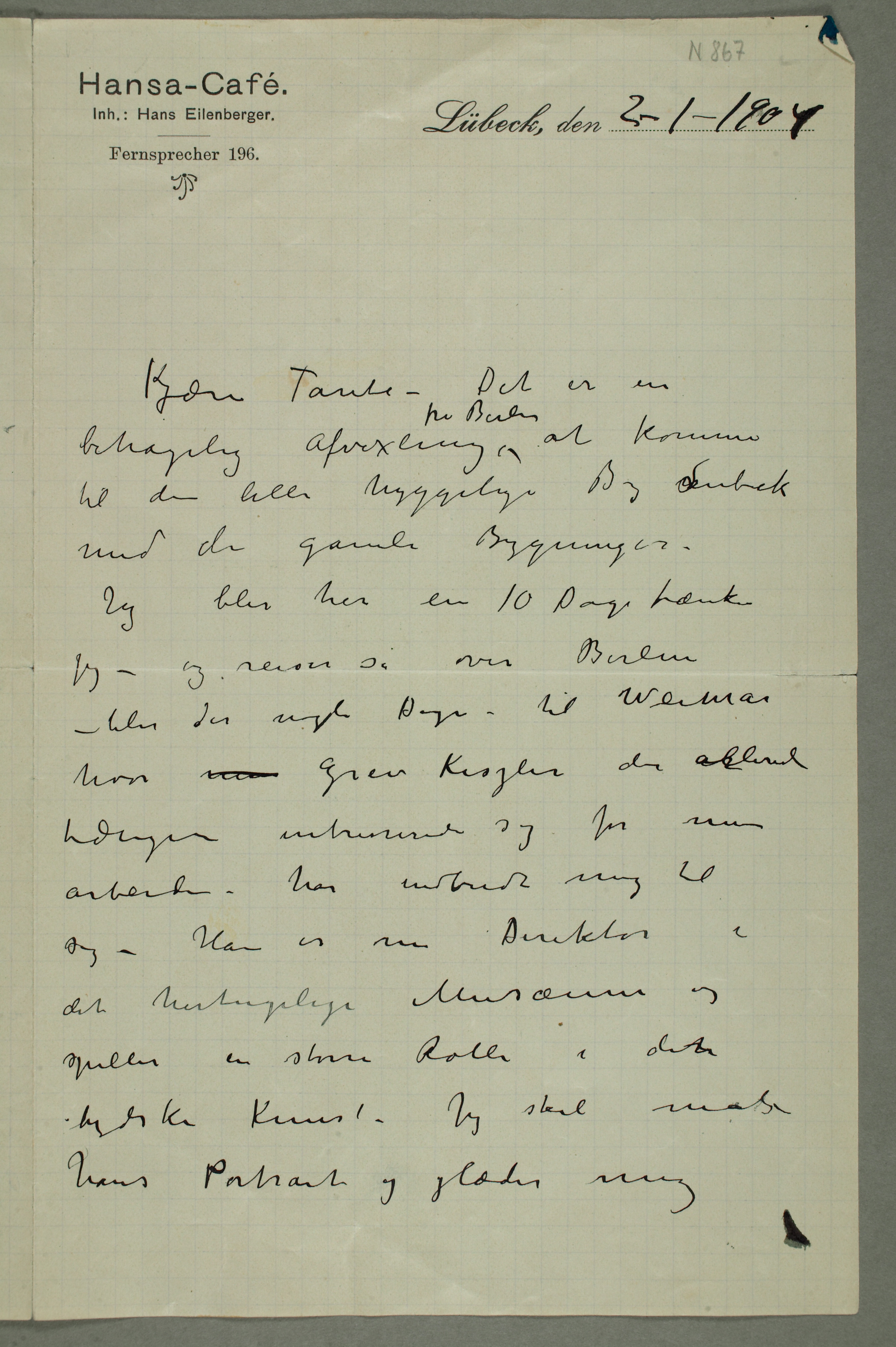 MM N 867, Munchmuseet. Datert 2.1.1904. Brev til Karen Bjølstad