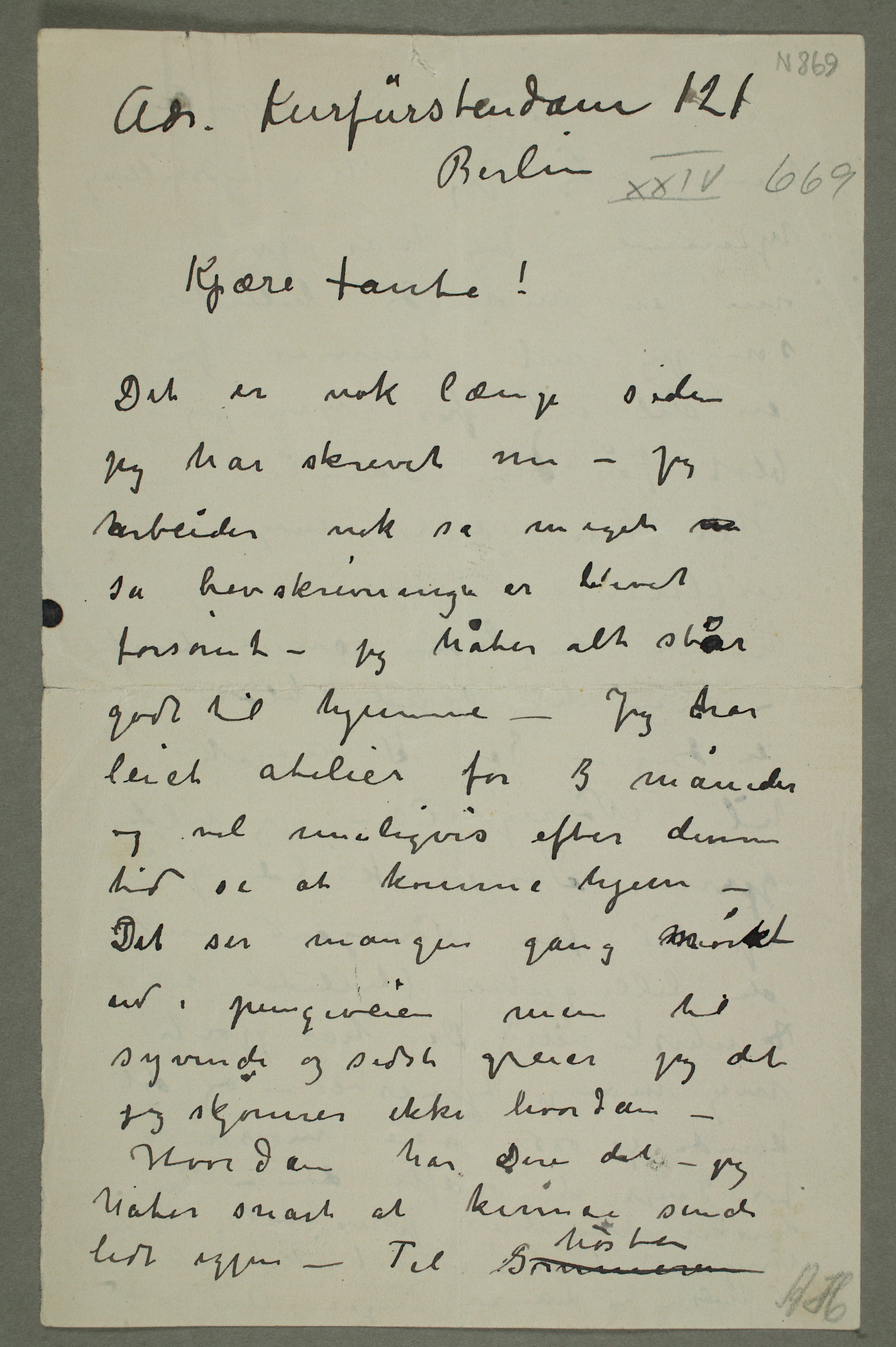 MM N 869, Munchmuseet. Datert [??].[??].1894. Brev til Karen Bjølstad
