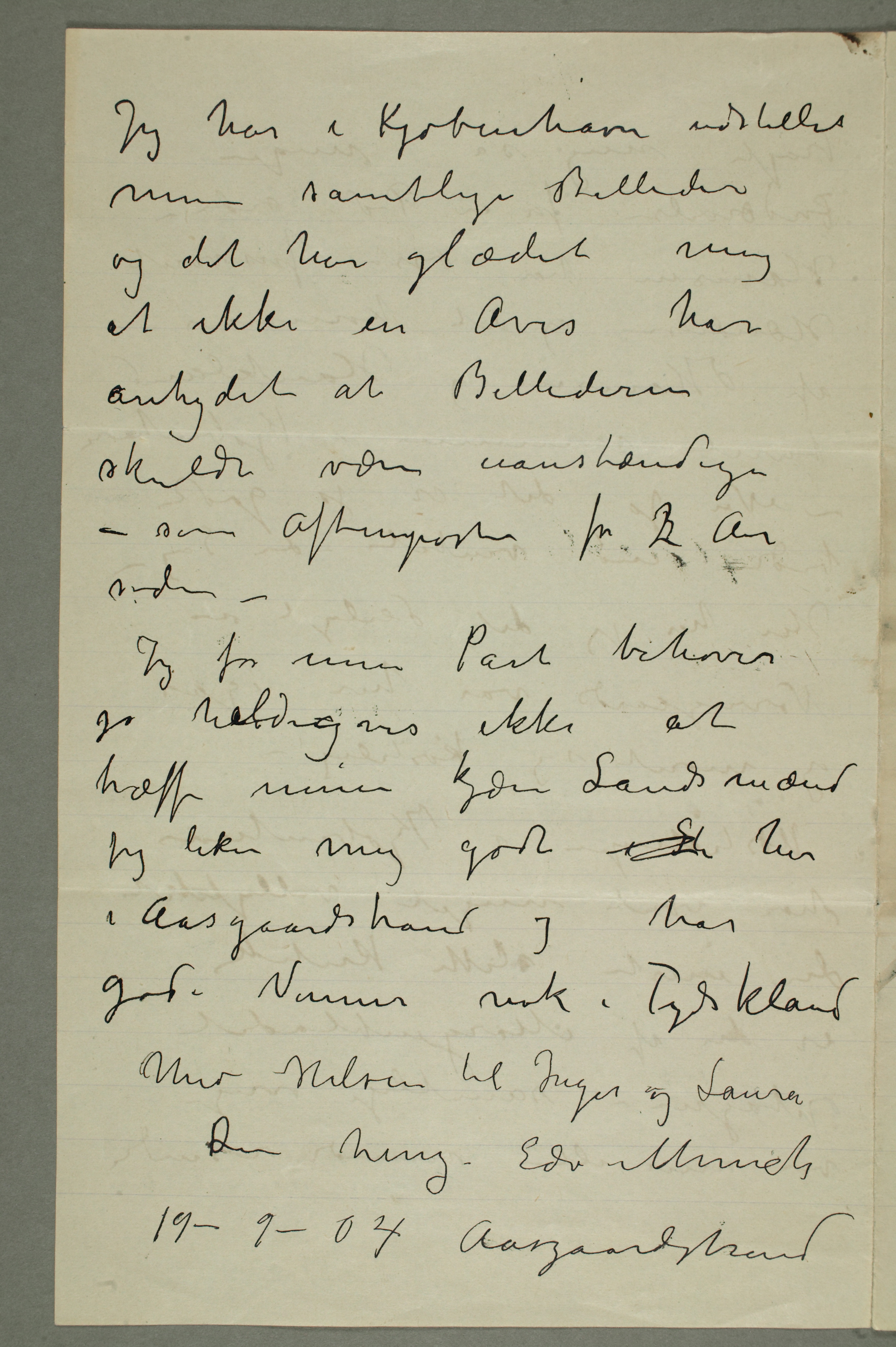 MM N 878, Munchmuseet. Datert 19.9.1904. Brev til Karen Bjølstad