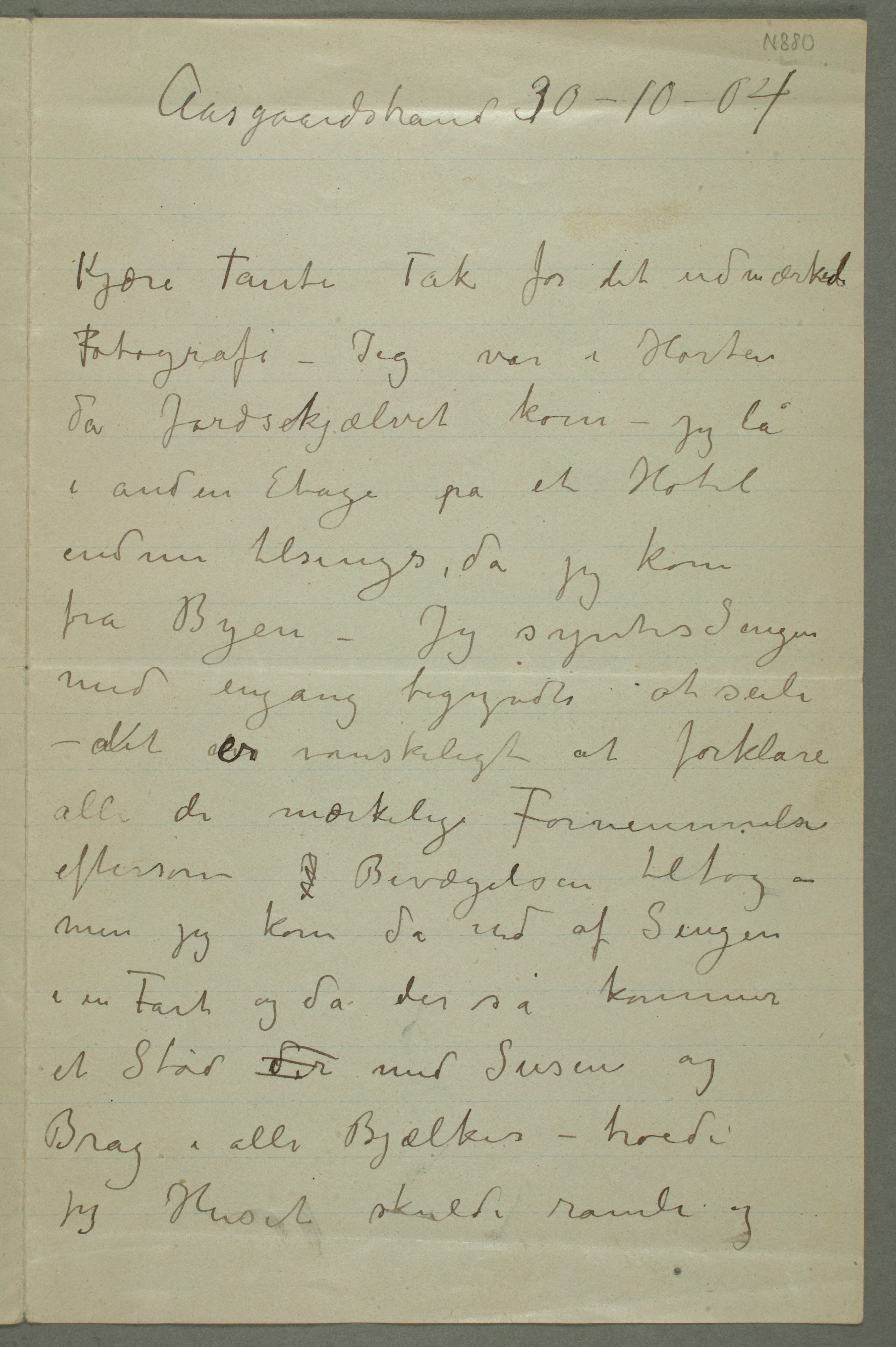 MM N 880, Munchmuseet. Datert 30.10.1904. Brev til Karen Bjølstad