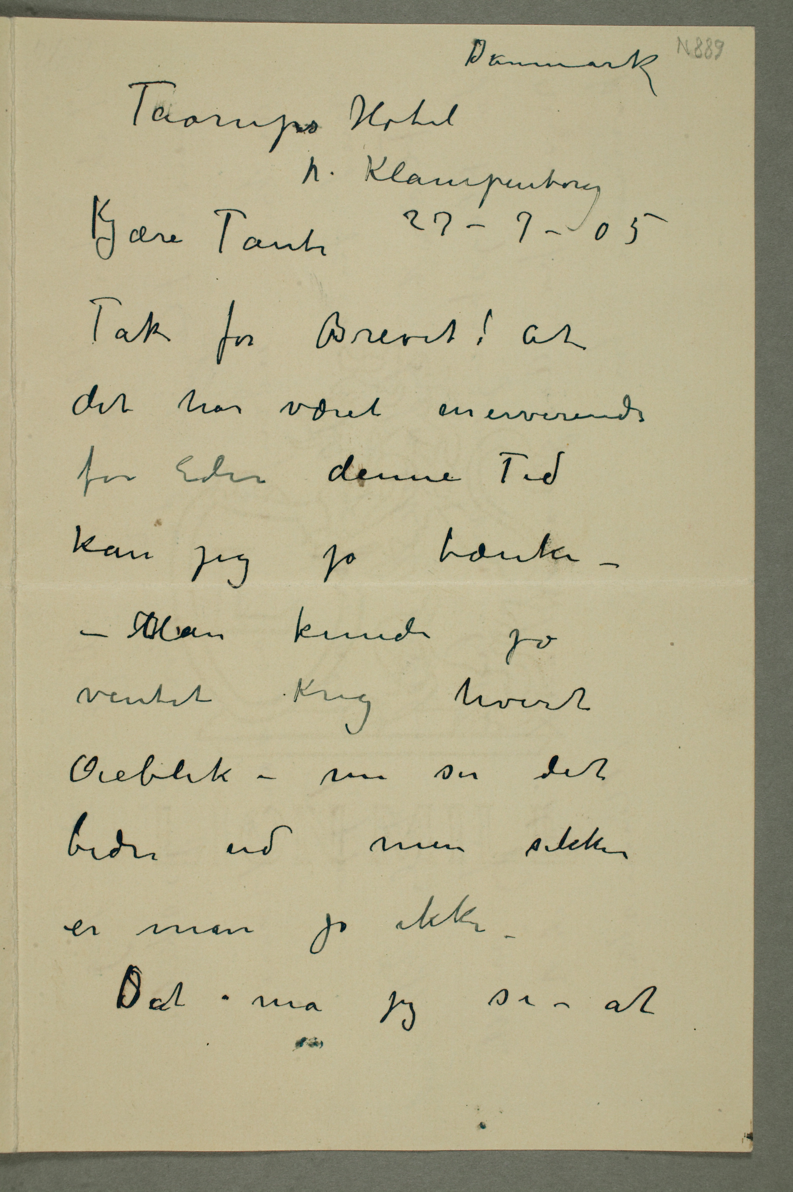 MM N 889, Munchmuseet. Datert 27.7.1905. Brev til Karen Bjølstad