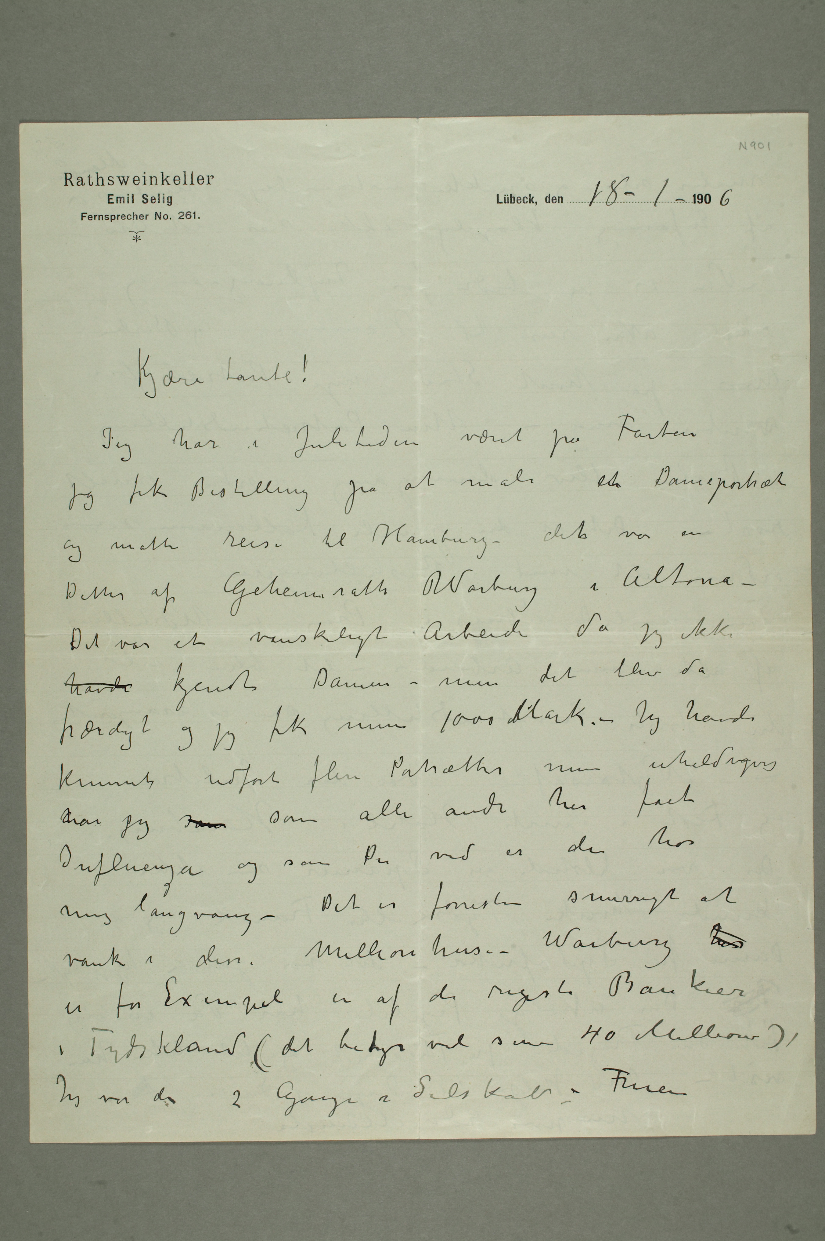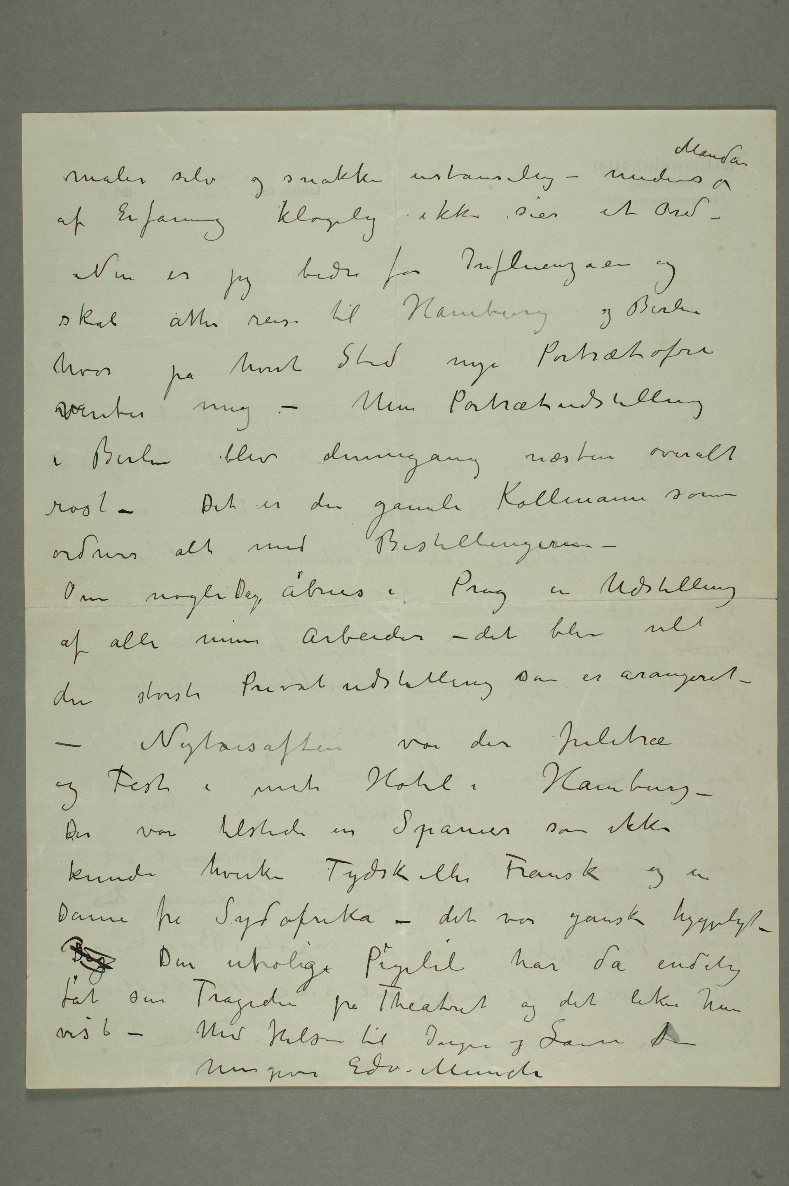 Filologisk kommentar: Brevet er feildatert av Munch. Portrettet av Ellen Warburg ble malt i overgangen 1904-1905, og riktig årstall må derfor være 1905.