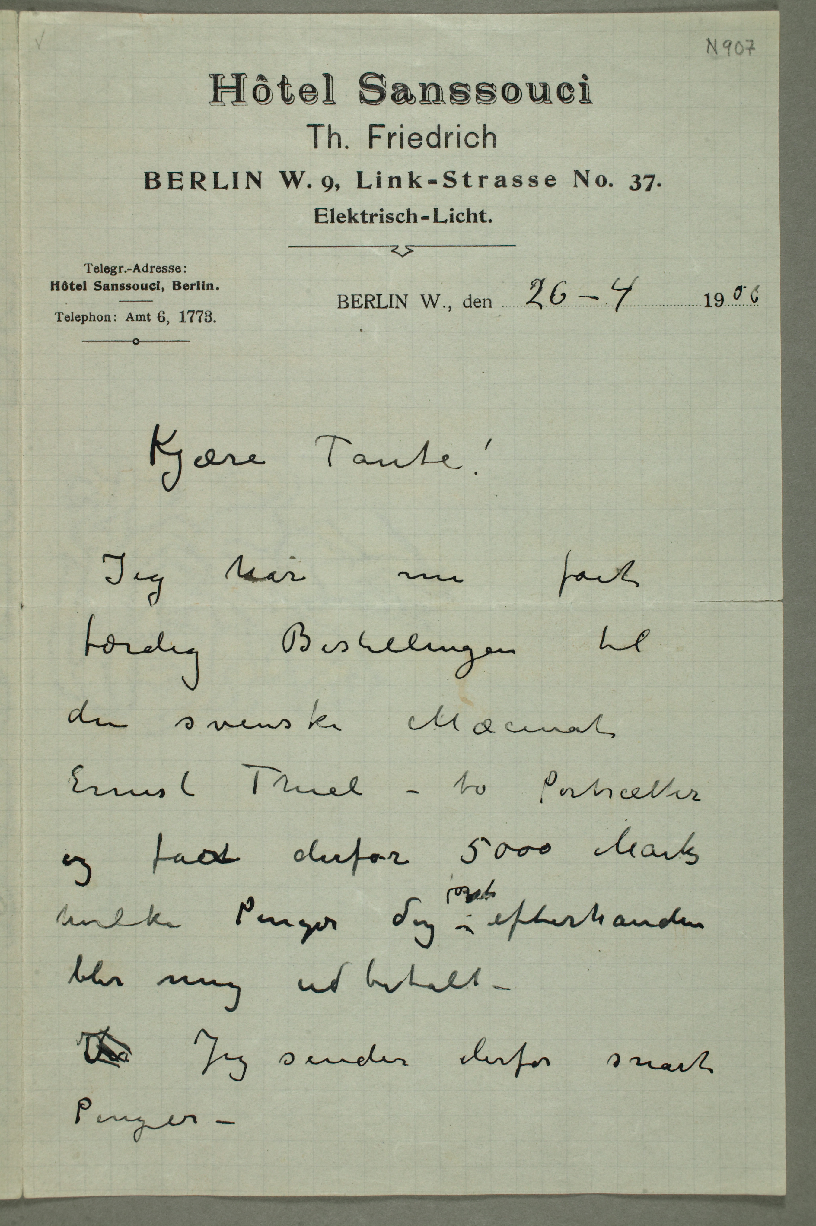 MM N 907, Munchmuseet. Datert 26.4.1906. Brev til Karen Bjølstad