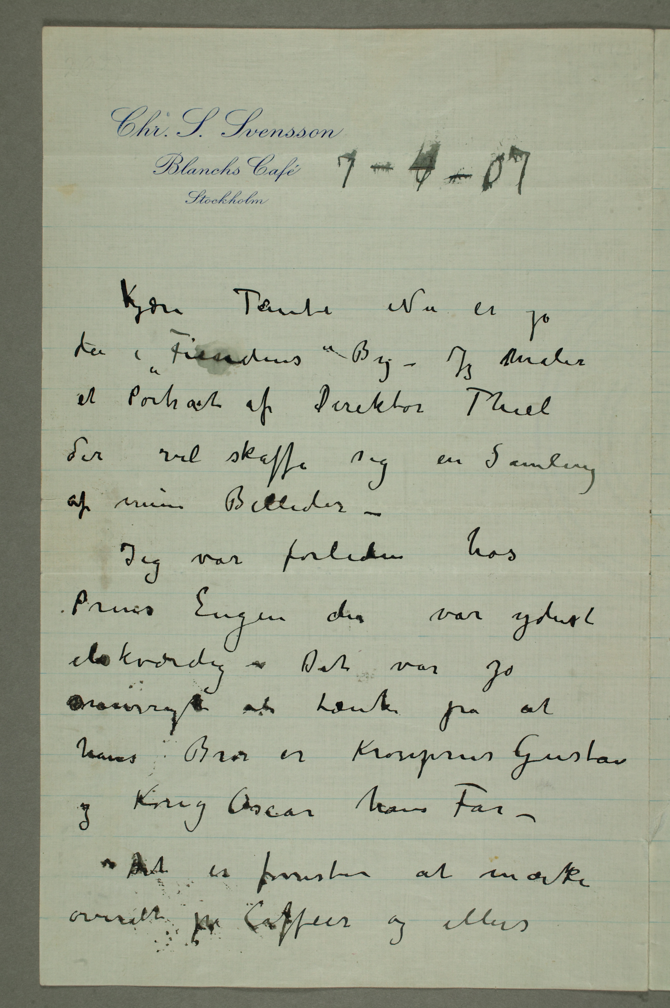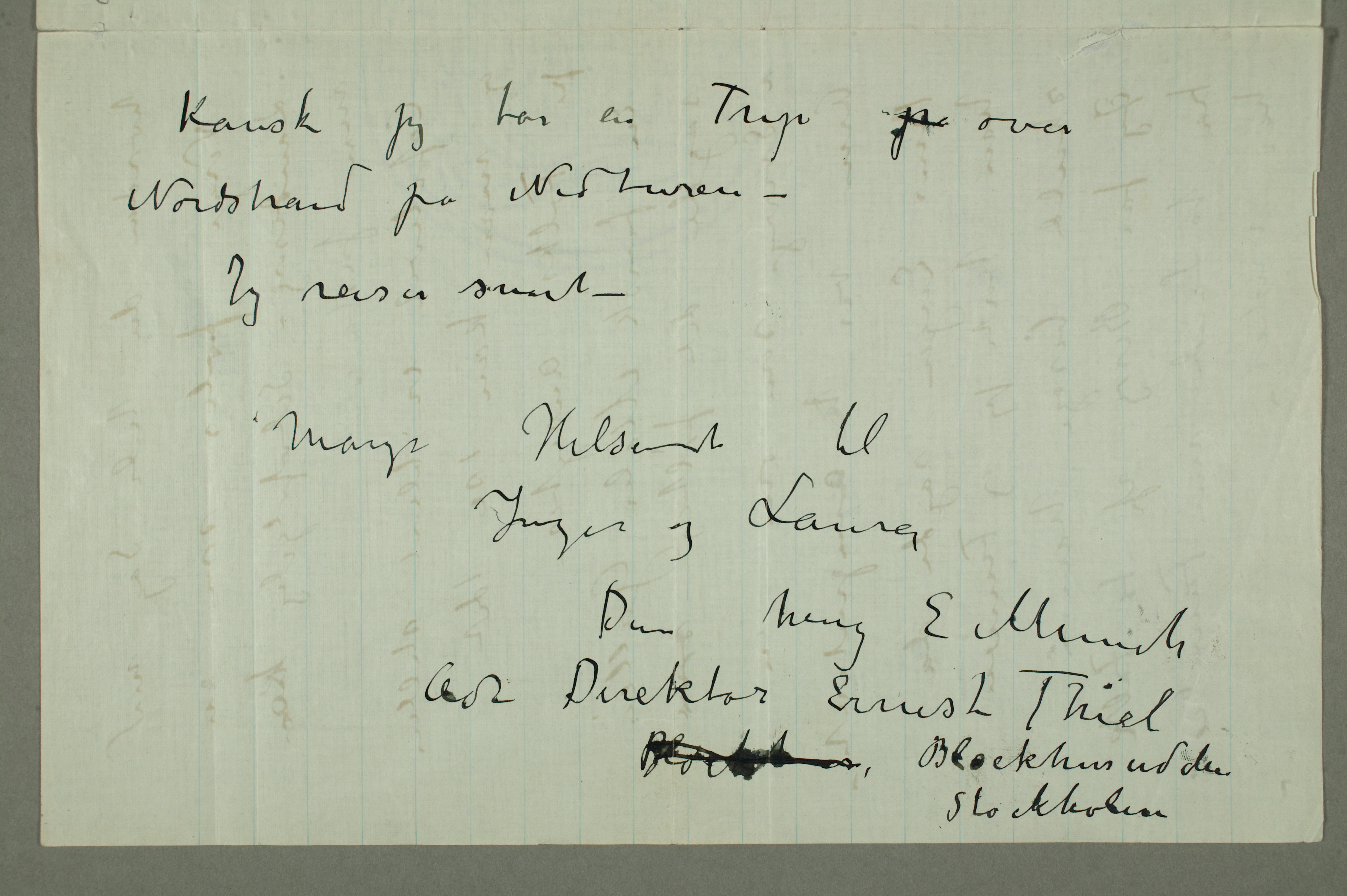 MM N 922, Munchmuseet. Datert 7.7.1907. Brev til Karen Bjølstad