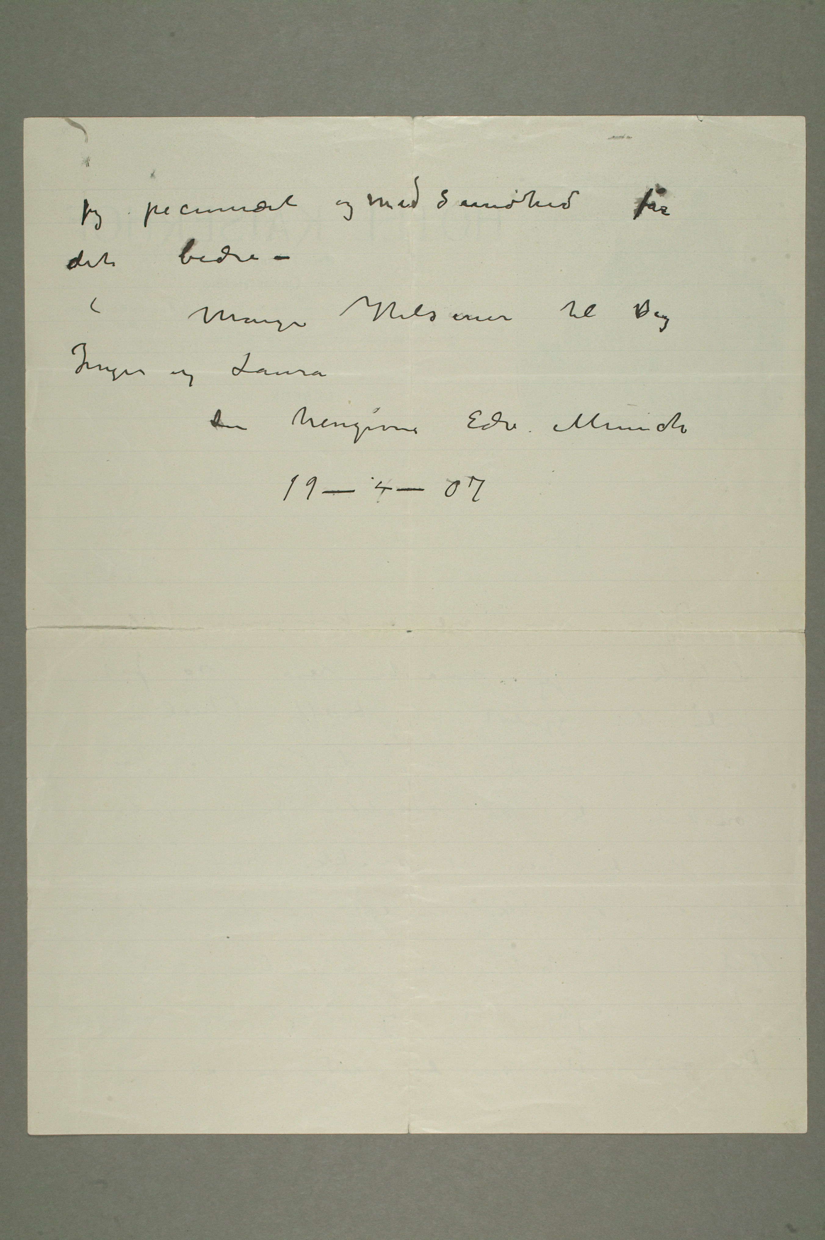 MM N 923, Munchmuseet. Datert 19.4.1907. Brev til Karen Bjølstad