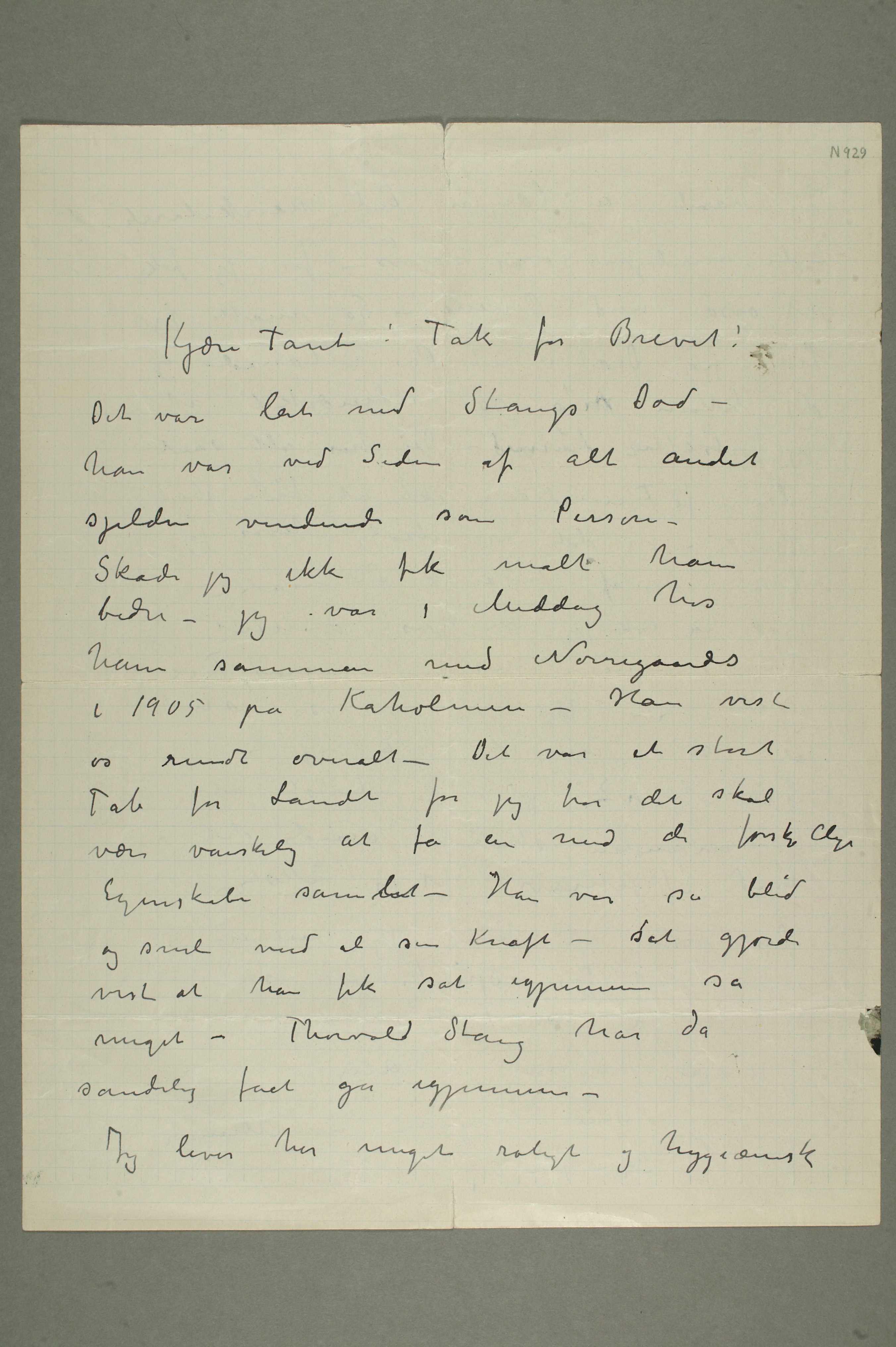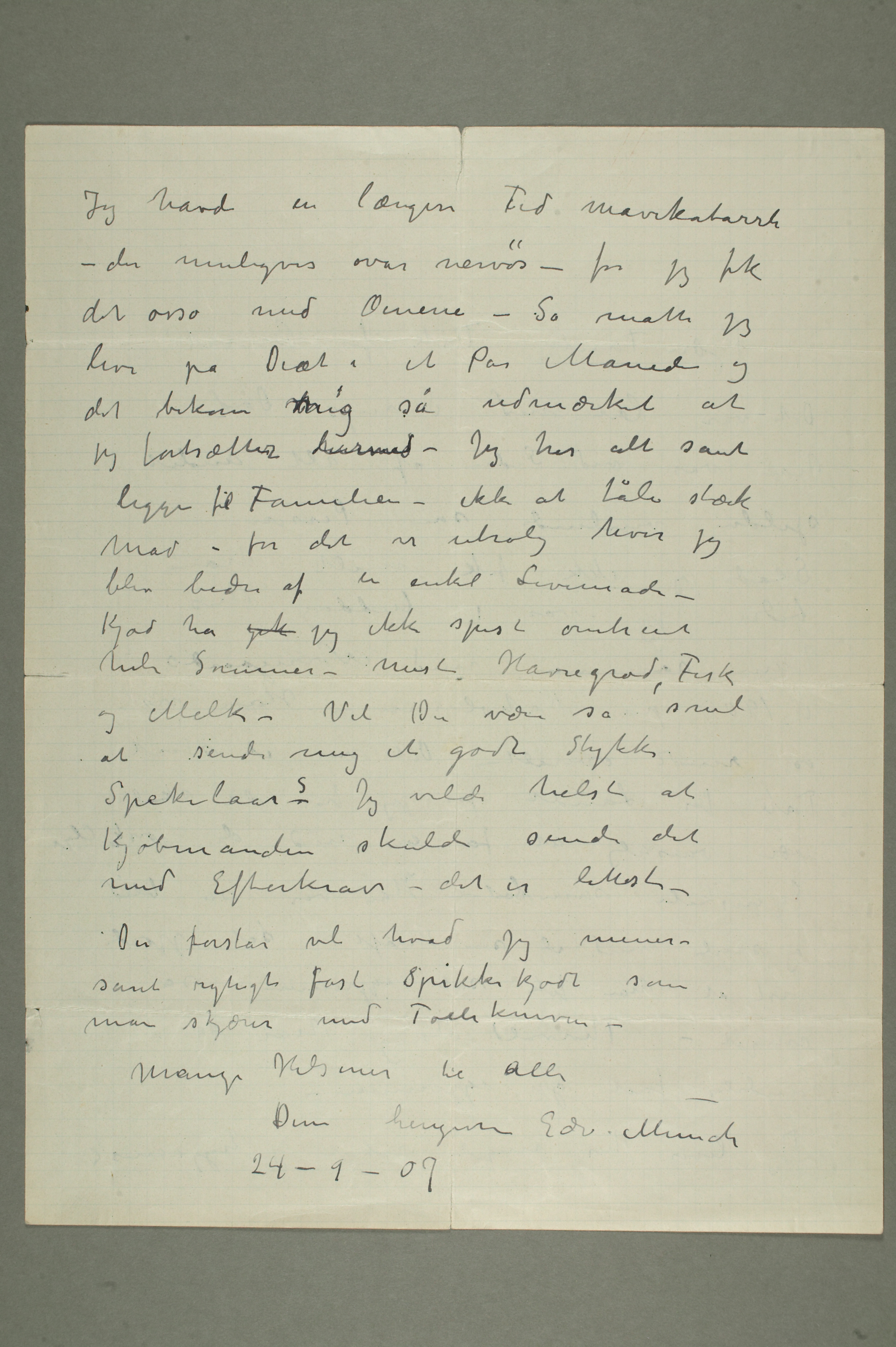 MM N 929, Munchmuseet. Datert 24.9.1907. Brev til Karen Bjølstad