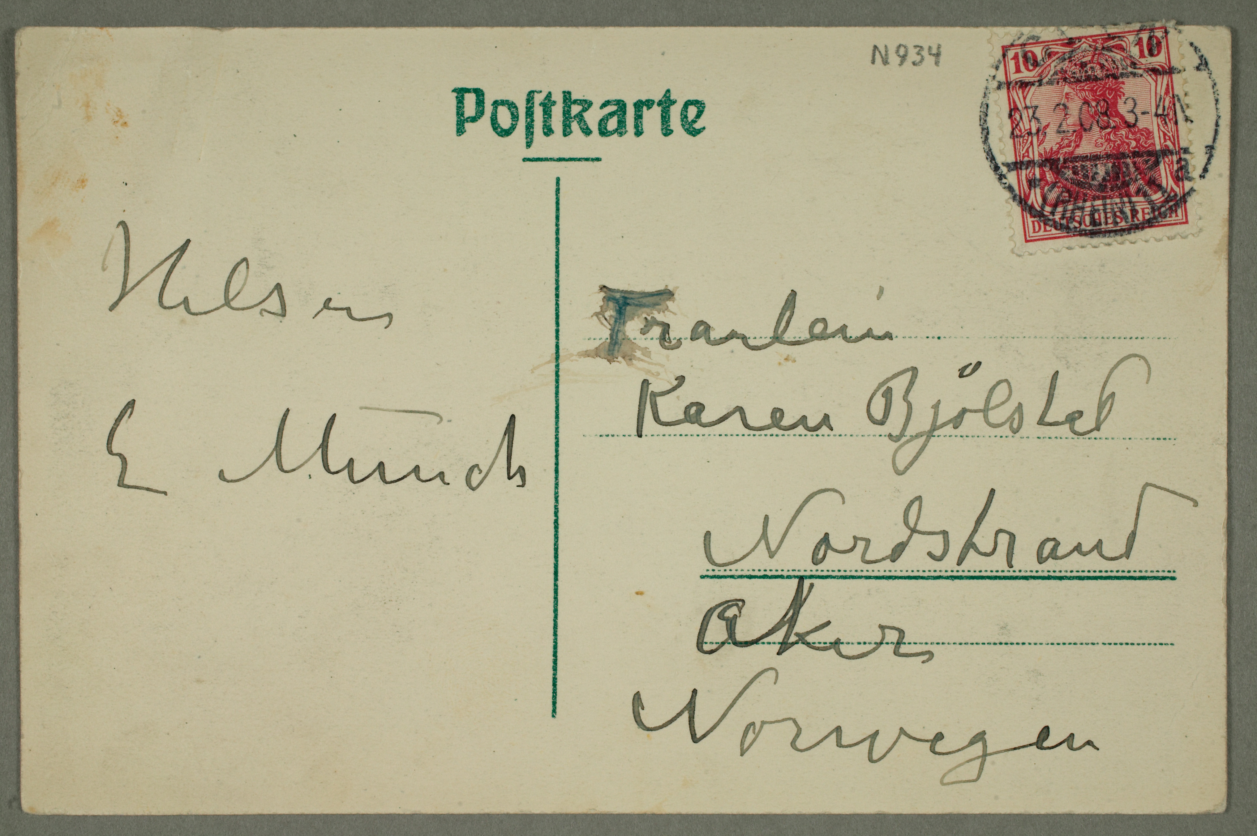 MM N 934, Munchmuseet. Datert 23.2.1908. Brev til Karen Bjølstad