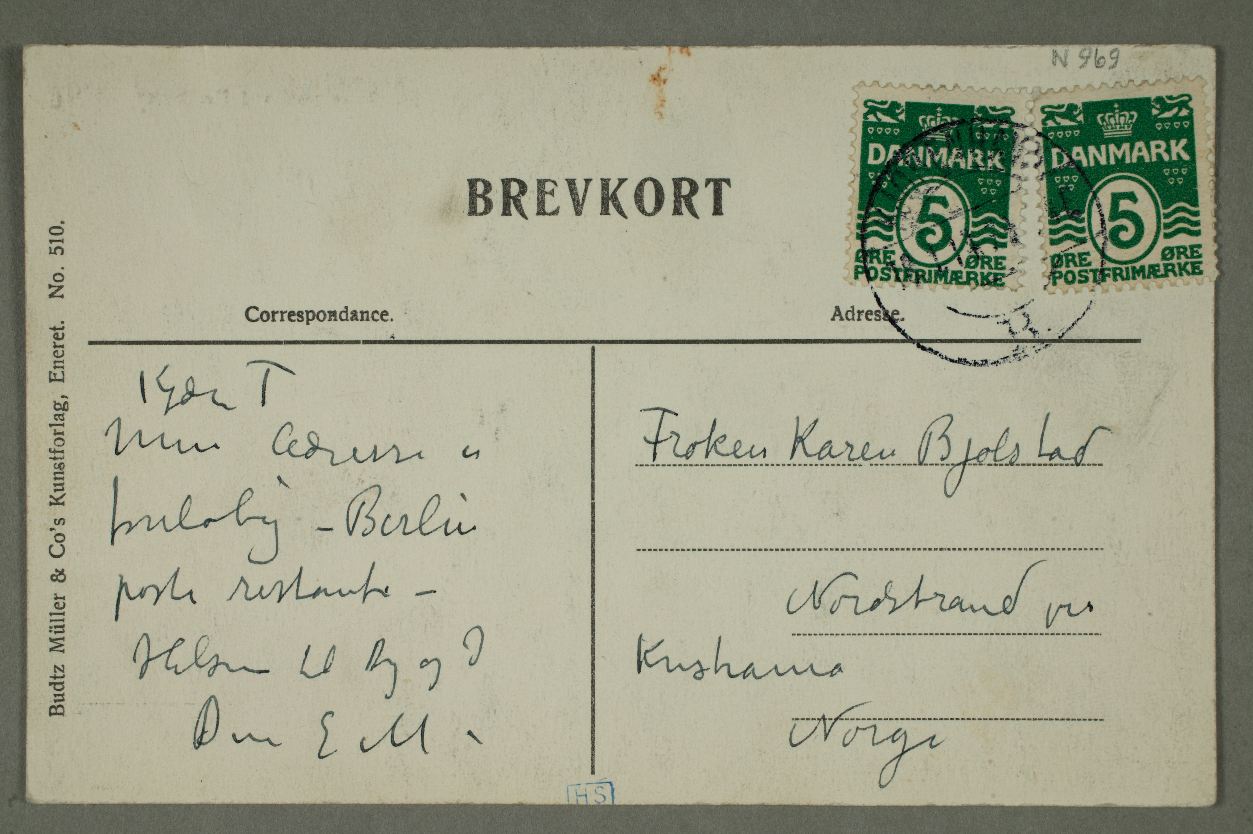 MM N 969, Munchmuseet. Datert 1912. Brev til Karen Bjølstad