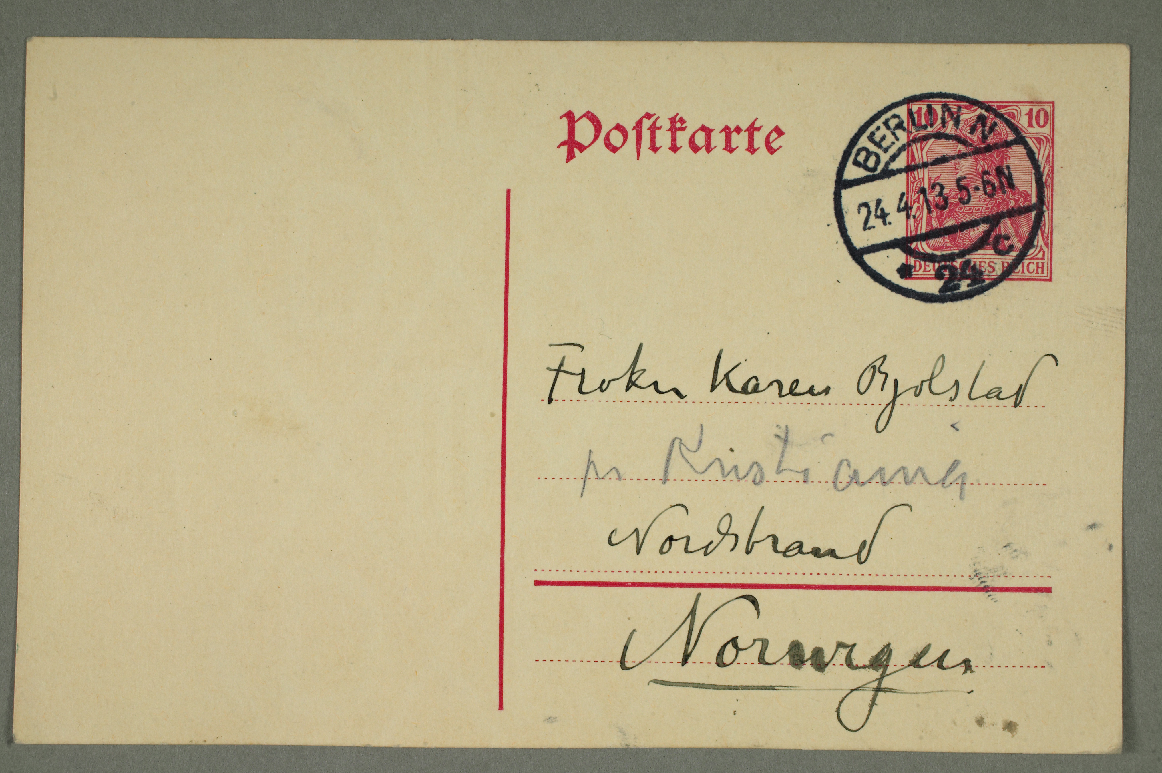 MM N 975, Munchmuseet. Datert 24.4.1913. Brev til Karen Bjølstad