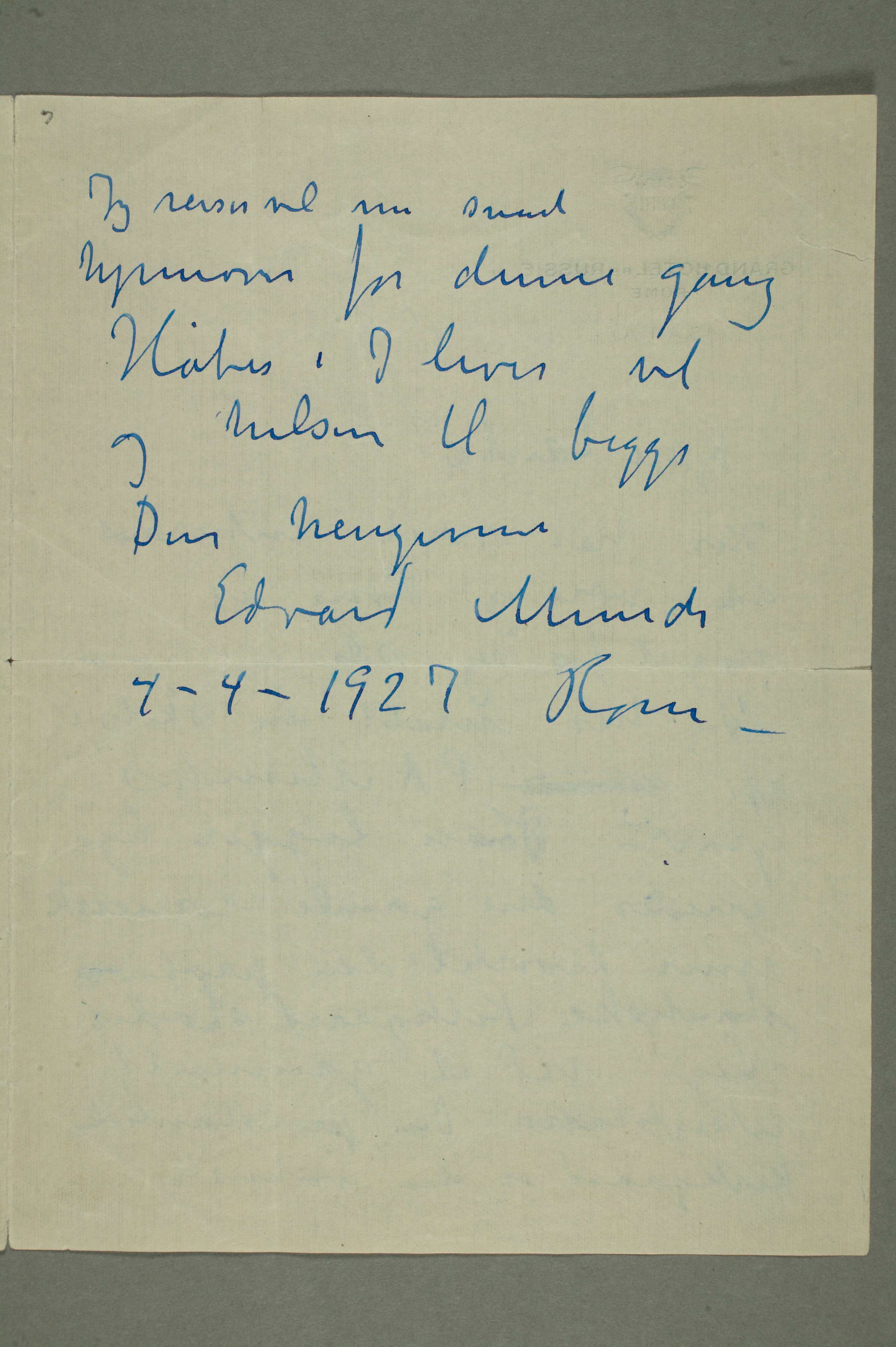 MM N 1018, Munchmuseet. Datert 4.4.1927. Brev til Karen Bjølstad