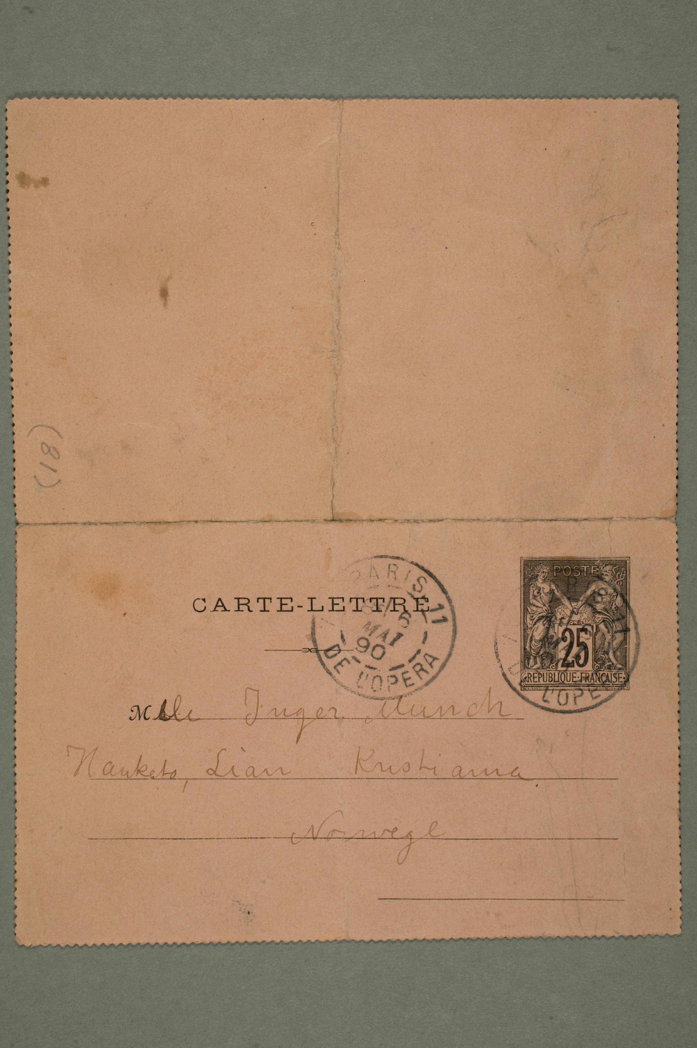 MM N 1094, Munchmuseet. Datert 5.1890. Brev til Inger Munch