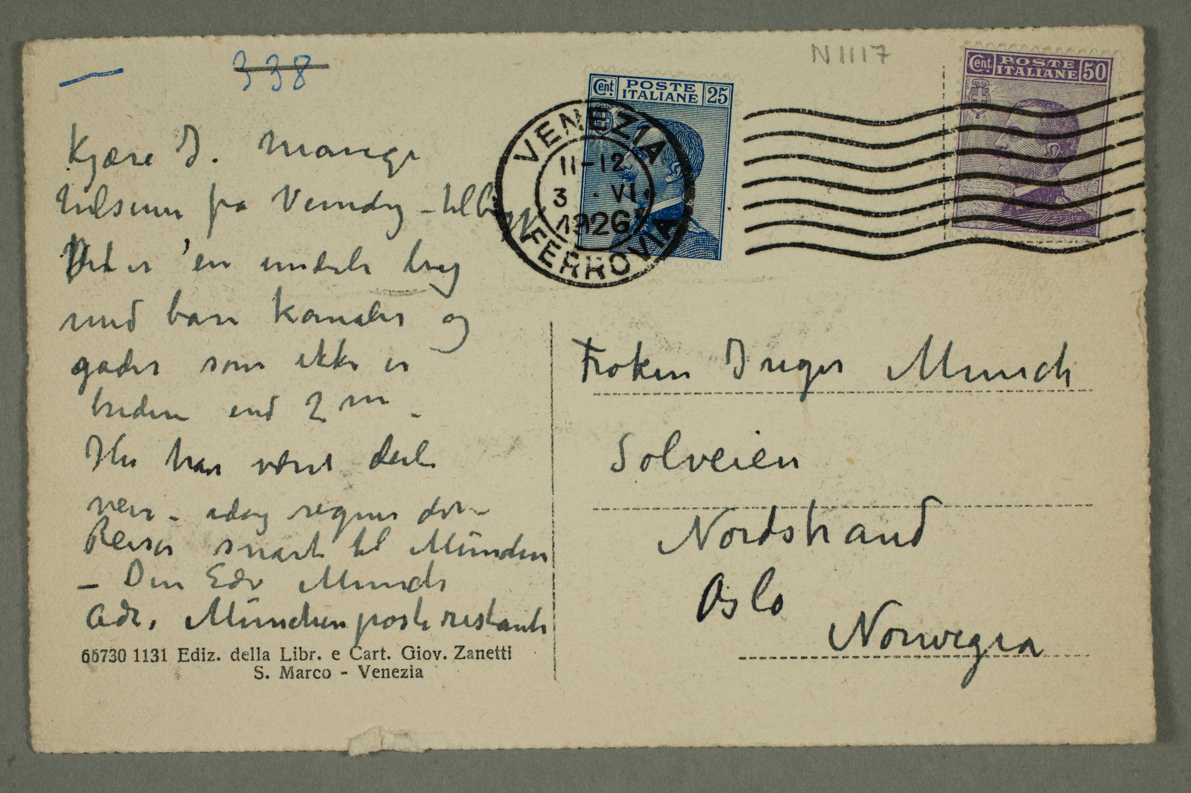 MM N 1117, Munchmuseet. Datert 3.6.1926. Brev til Inger Munch