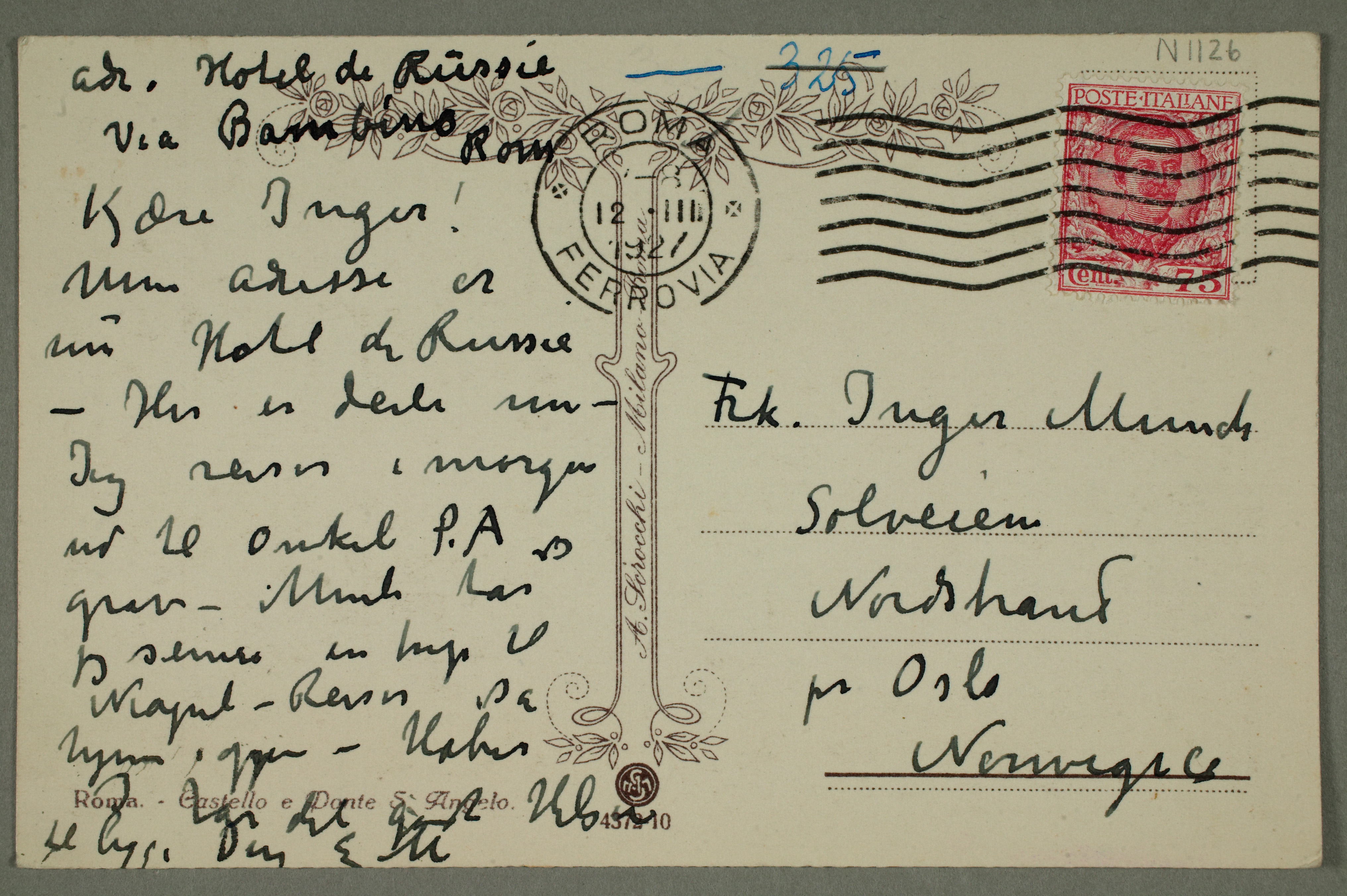 MM N 1126, Munchmuseet. Datert 12.3.1927. Brev til Inger Munch