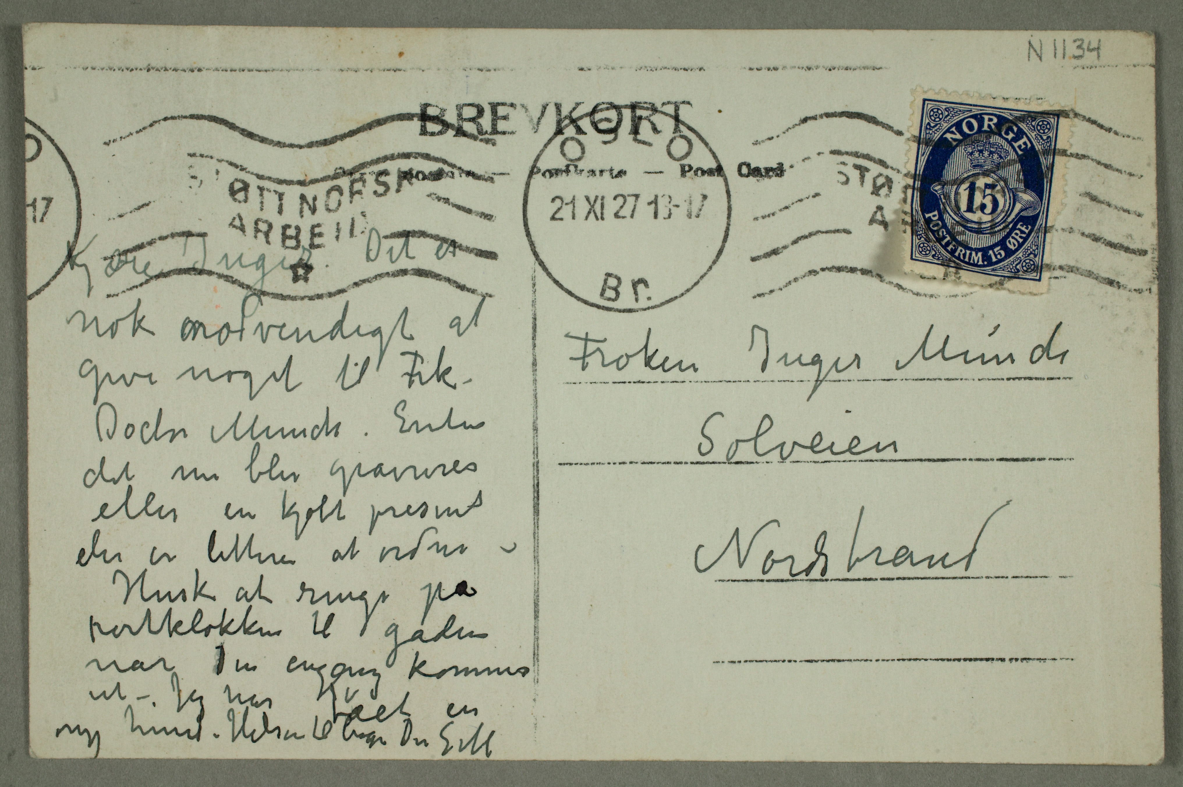 MM N 1134, Munchmuseet. Datert 21.11.1927. Brev til Inger Munch