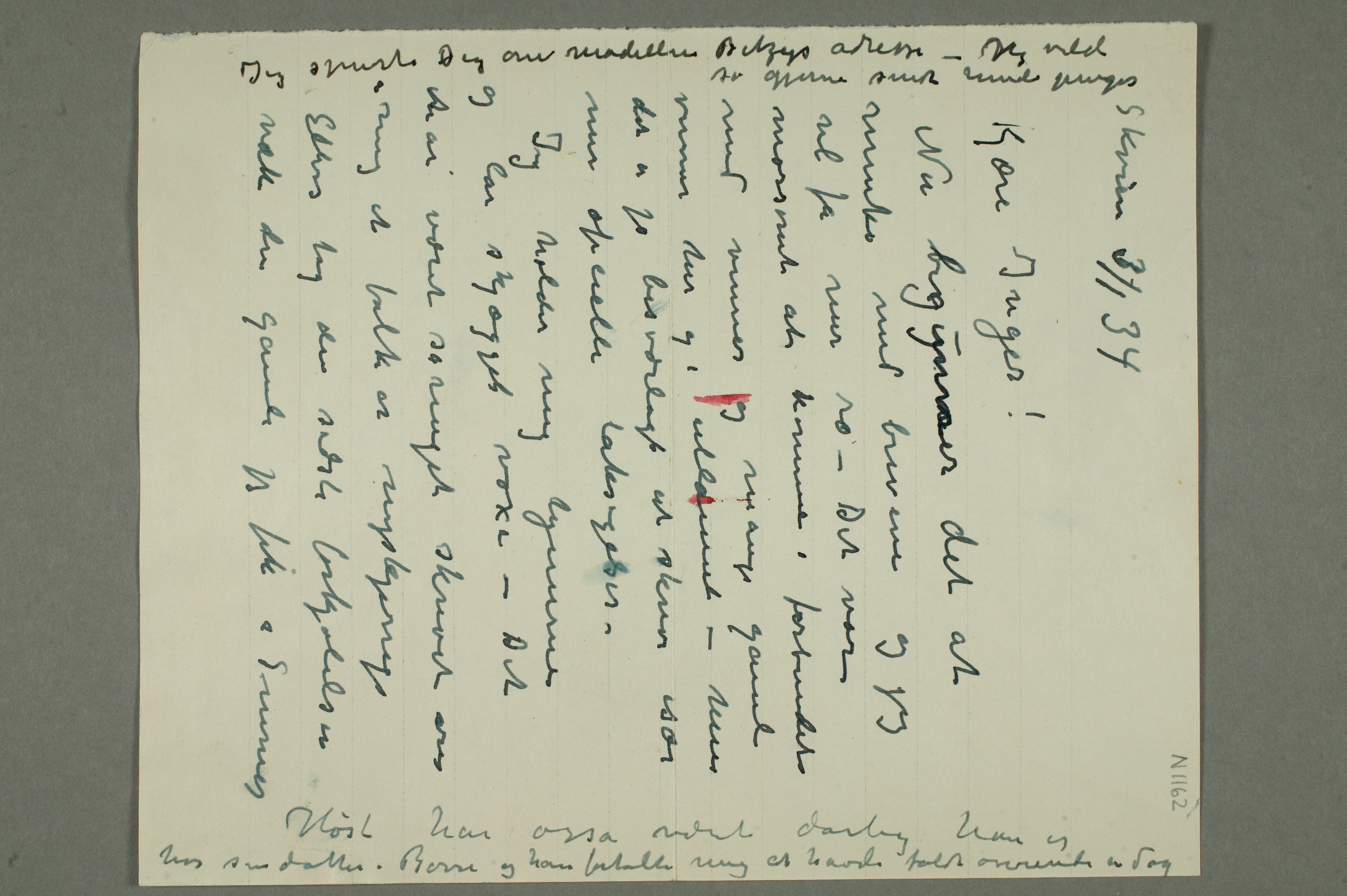 MM N 1162, Munchmuseet. Datert 3.1.1934. Brev til Inger Munch
