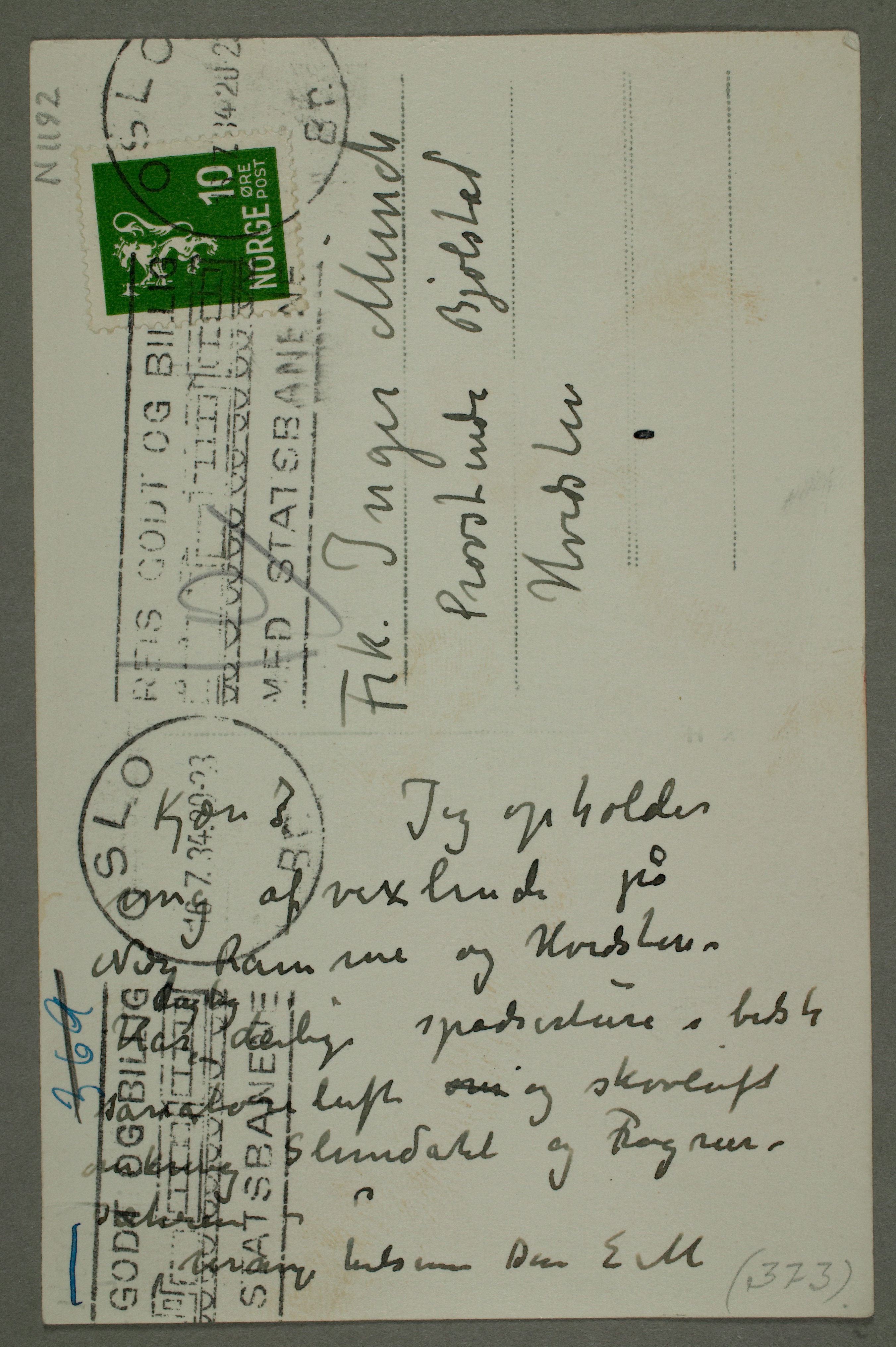 MM N 1192, Munchmuseet. Datert 16.7.1934. Brev til Inger Munch
