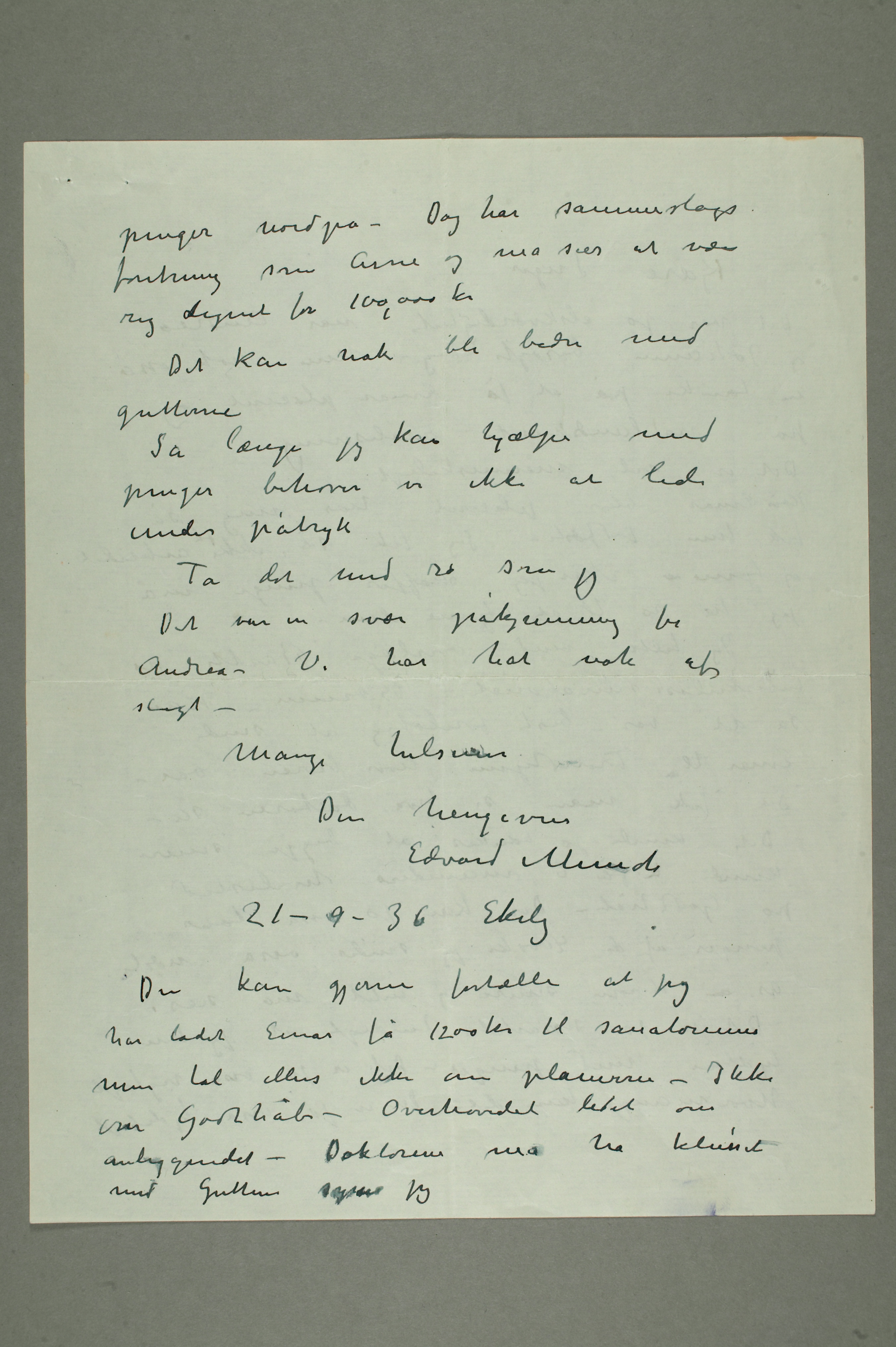 MM N 1201, Munchmuseet. Datert 21.9.1936. Brev til Inger Munch