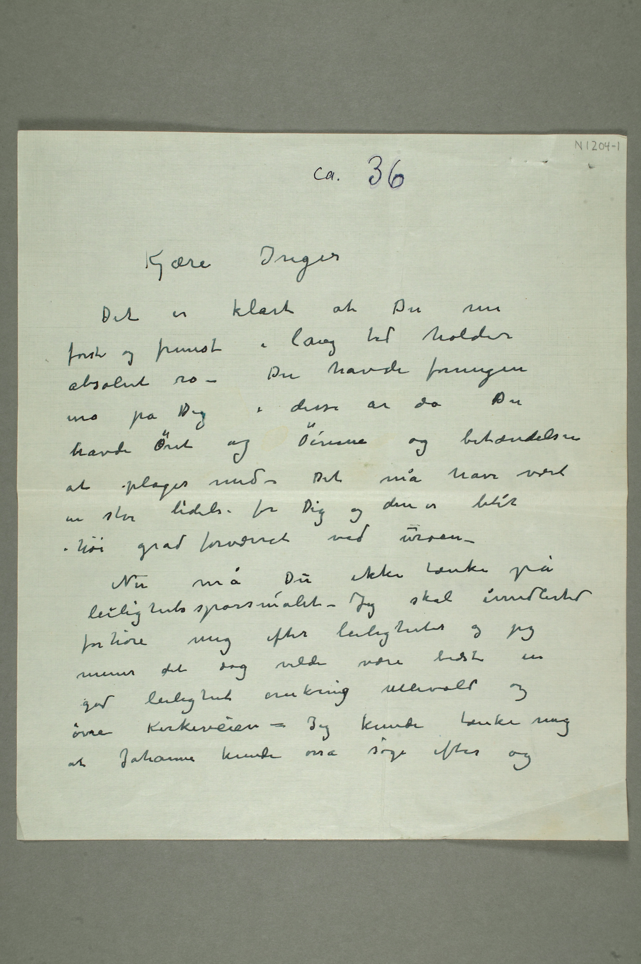 MM N 1204, Munchmuseet. Datert 1936. Brev til Inger Munch