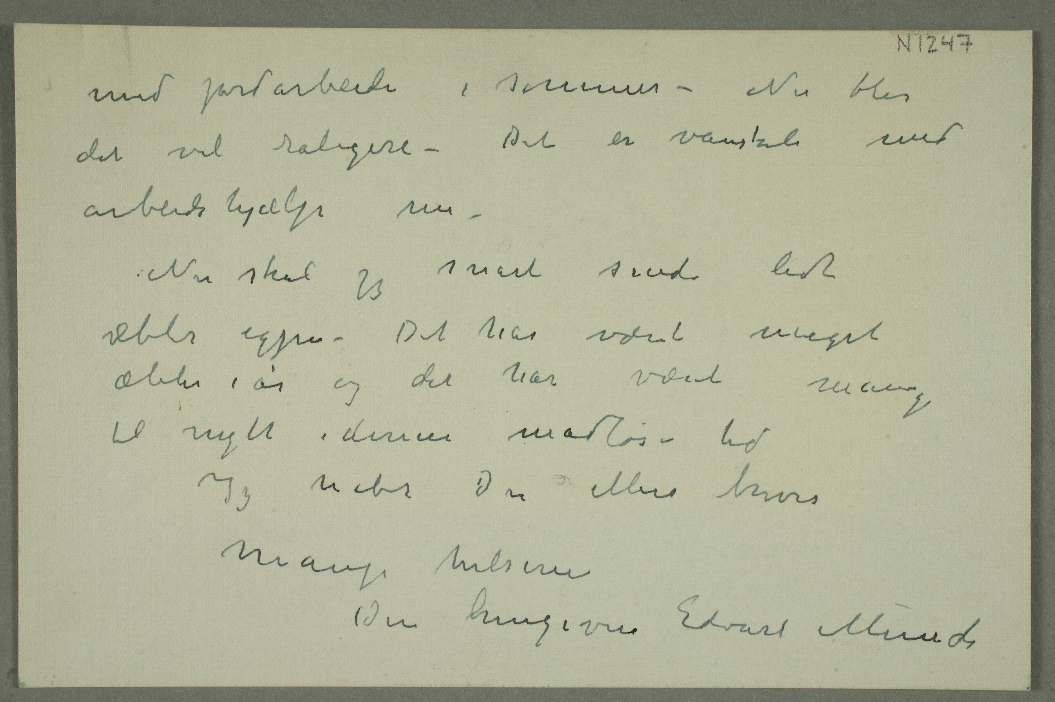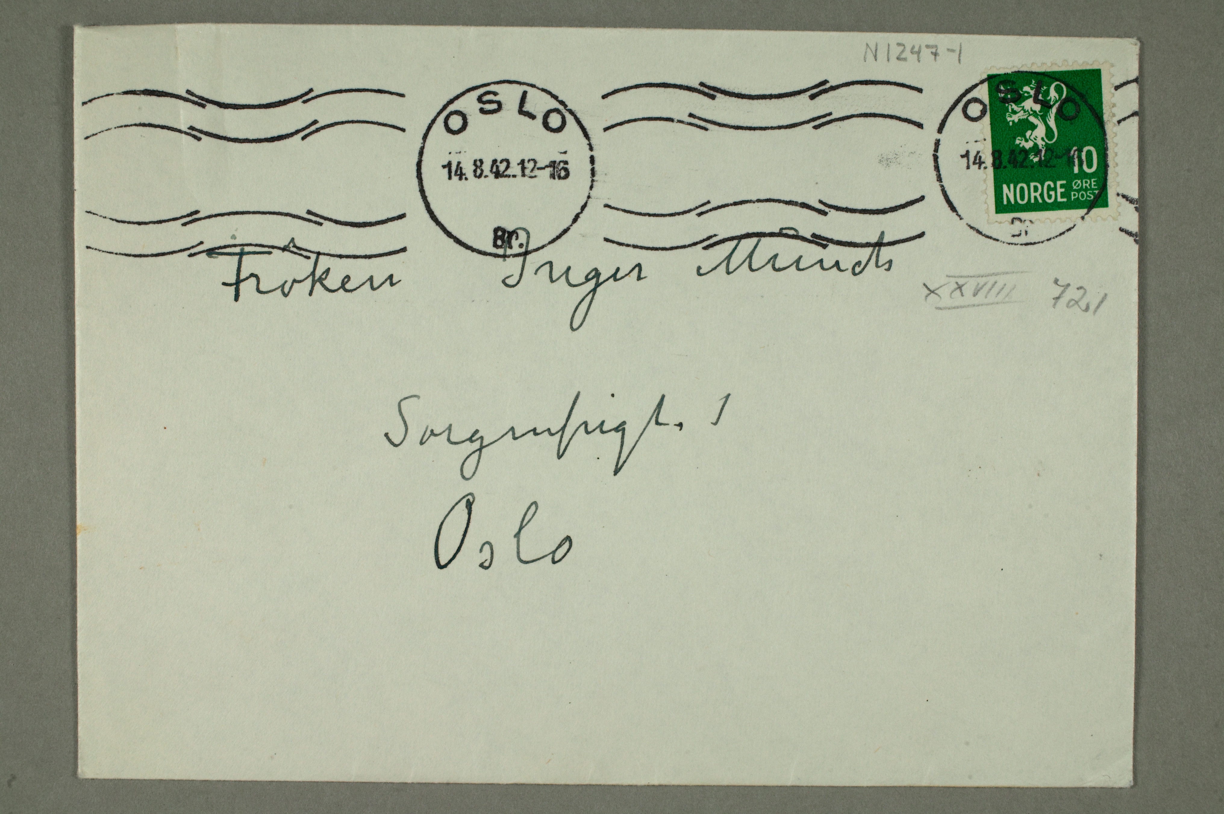 MM N 1247, Munchmuseet. Datert 14.8.1942. Brev til Inger Munch