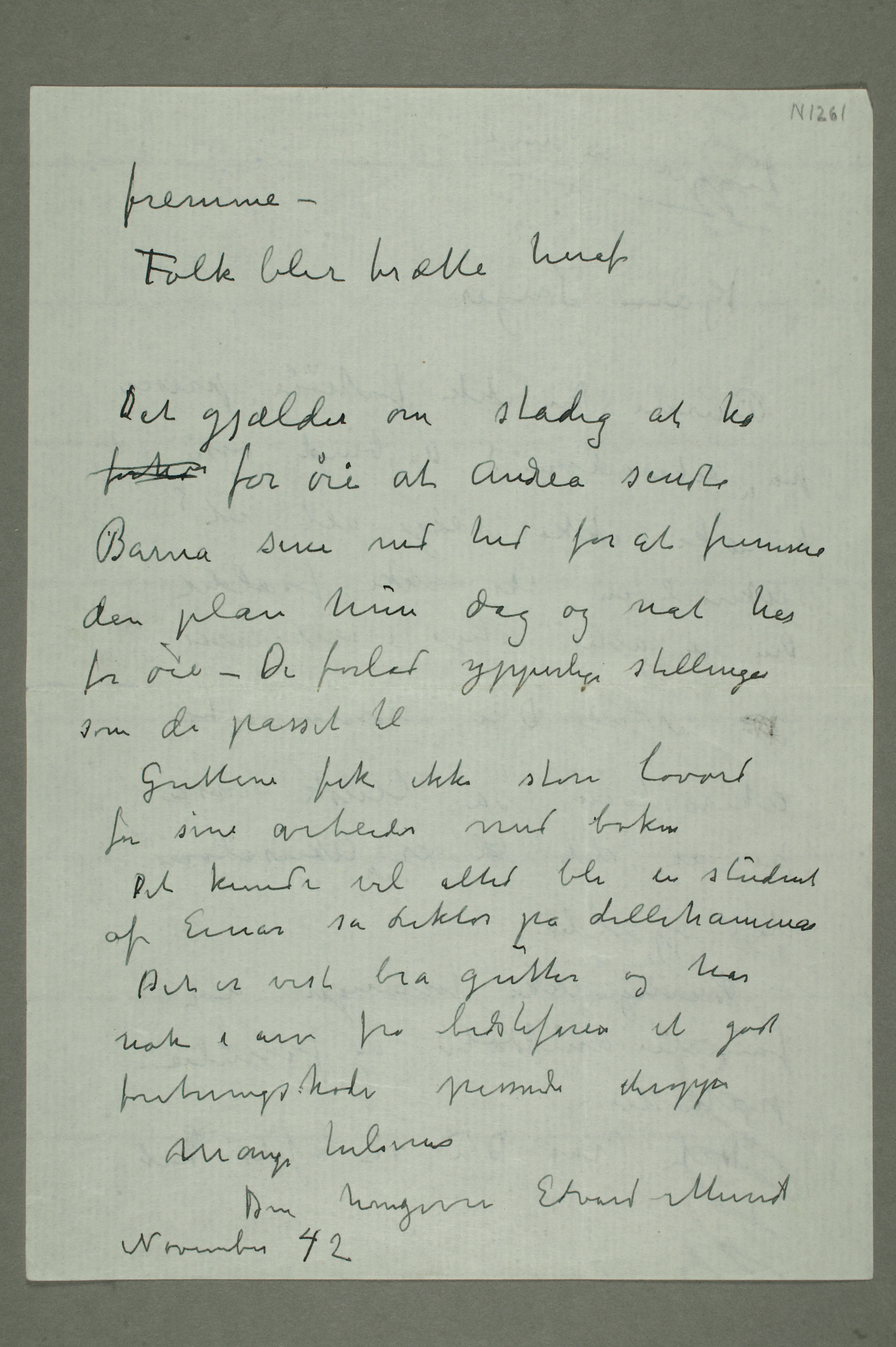 MM N 1261, Munchmuseet. Datert 11.1942. Brev til Inger Munch