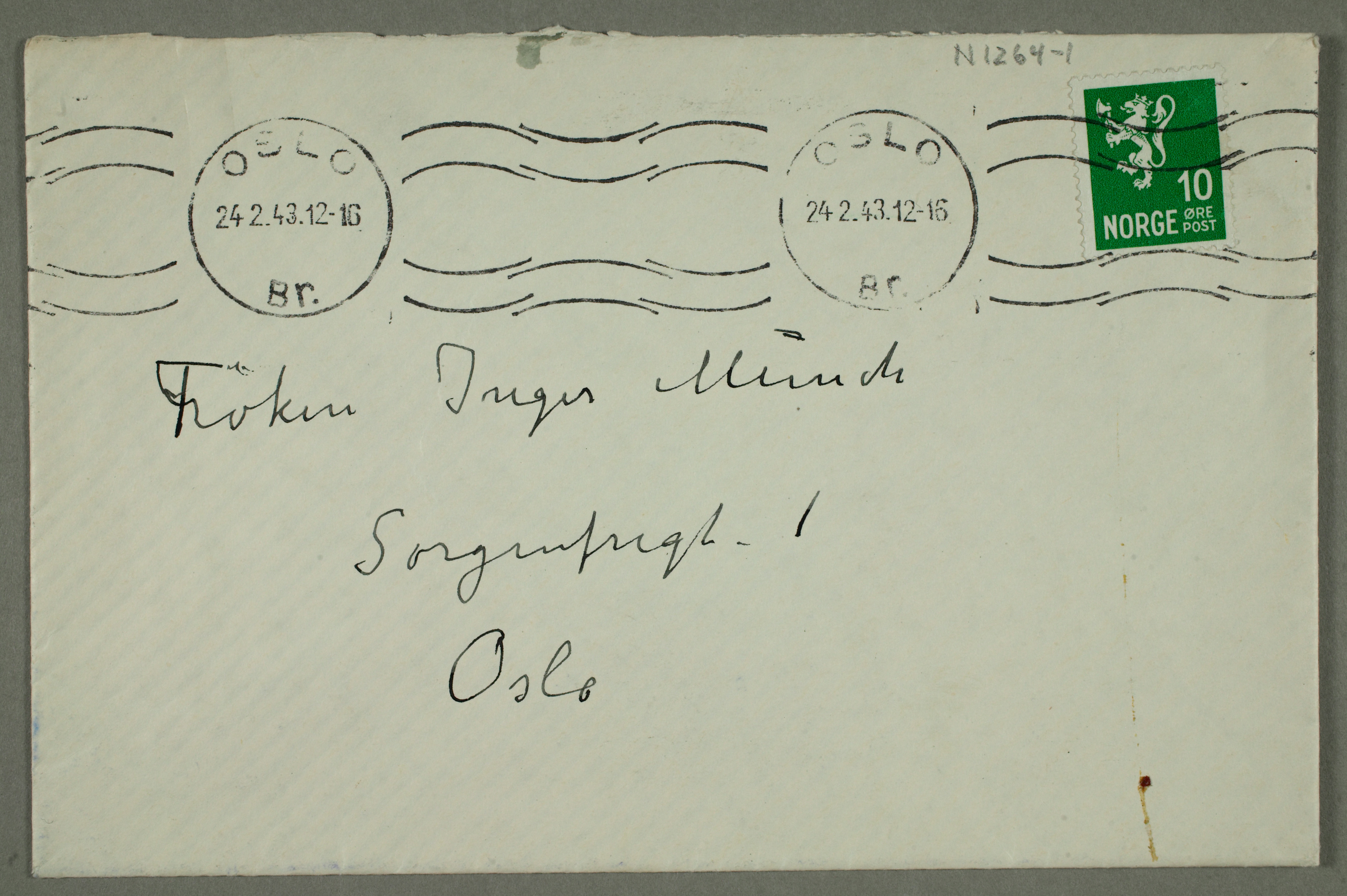 MM N 1264, Munchmuseet. Datert 24.2.1943. Brev til Inger Munch