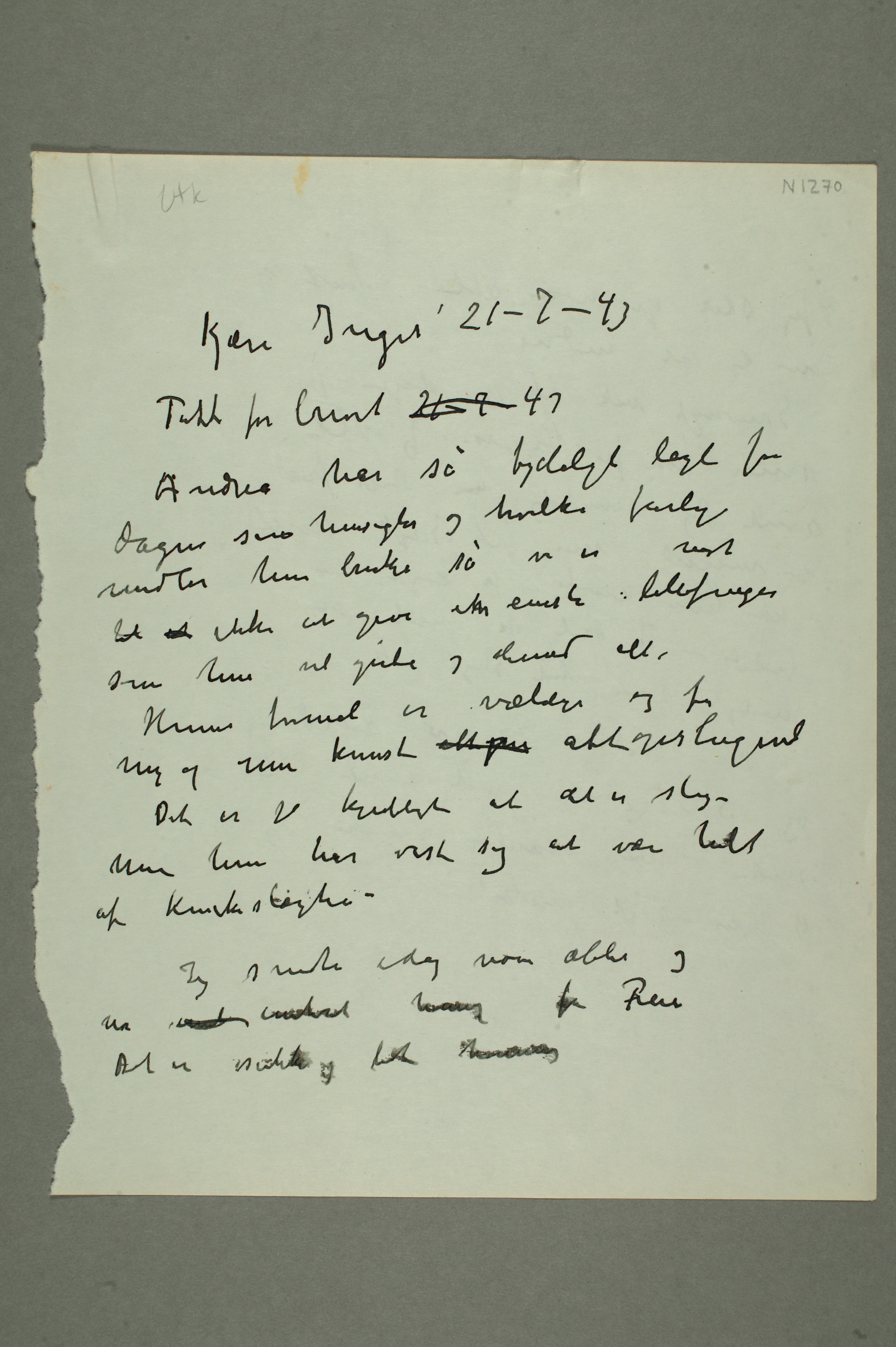 MM N 1270, Munchmuseet. Datert 21.7.1943. Brev til Inger Munch