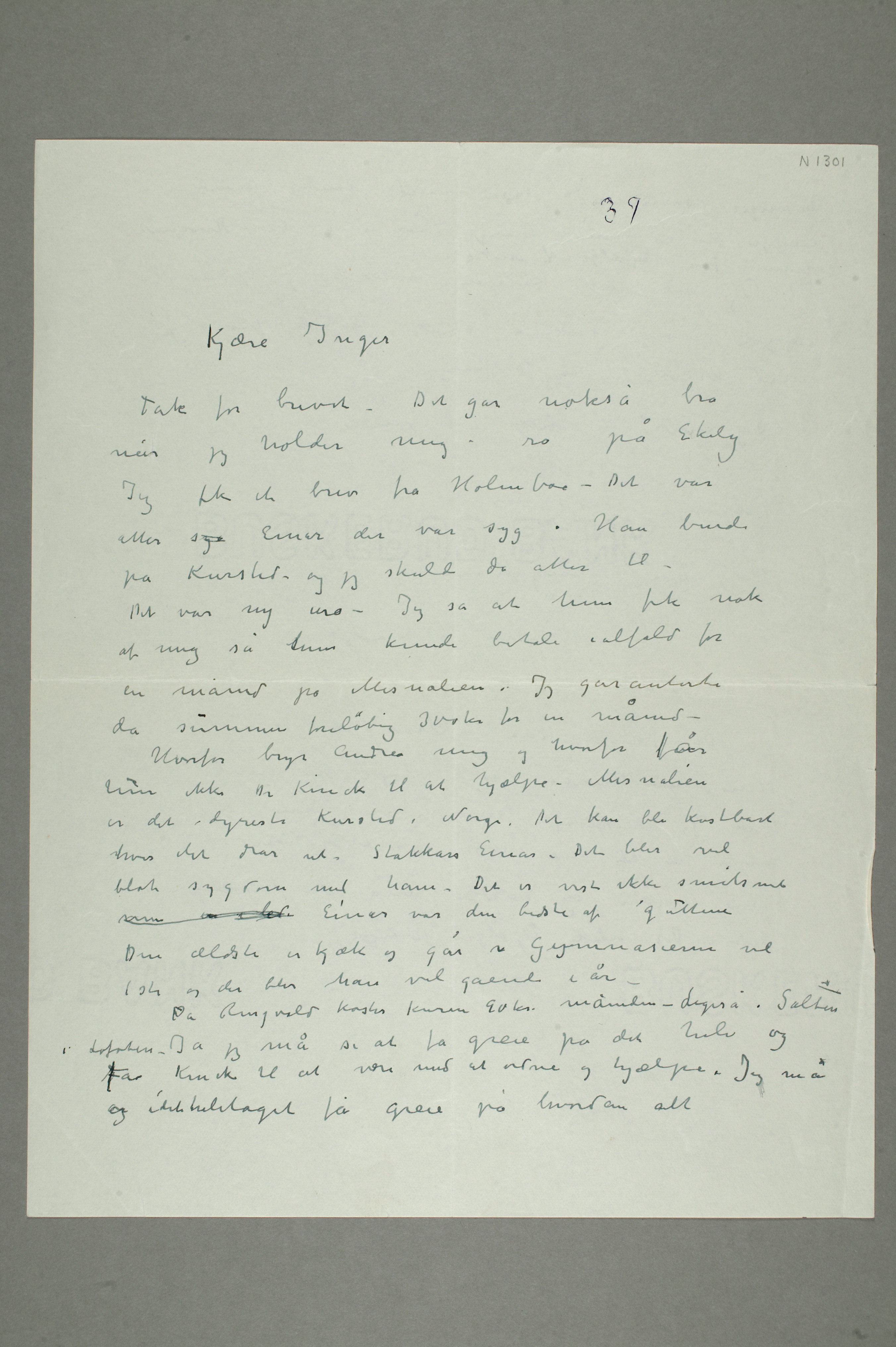 MM N 1301, Munchmuseet. Datert 1939. Brev til Inger Munch