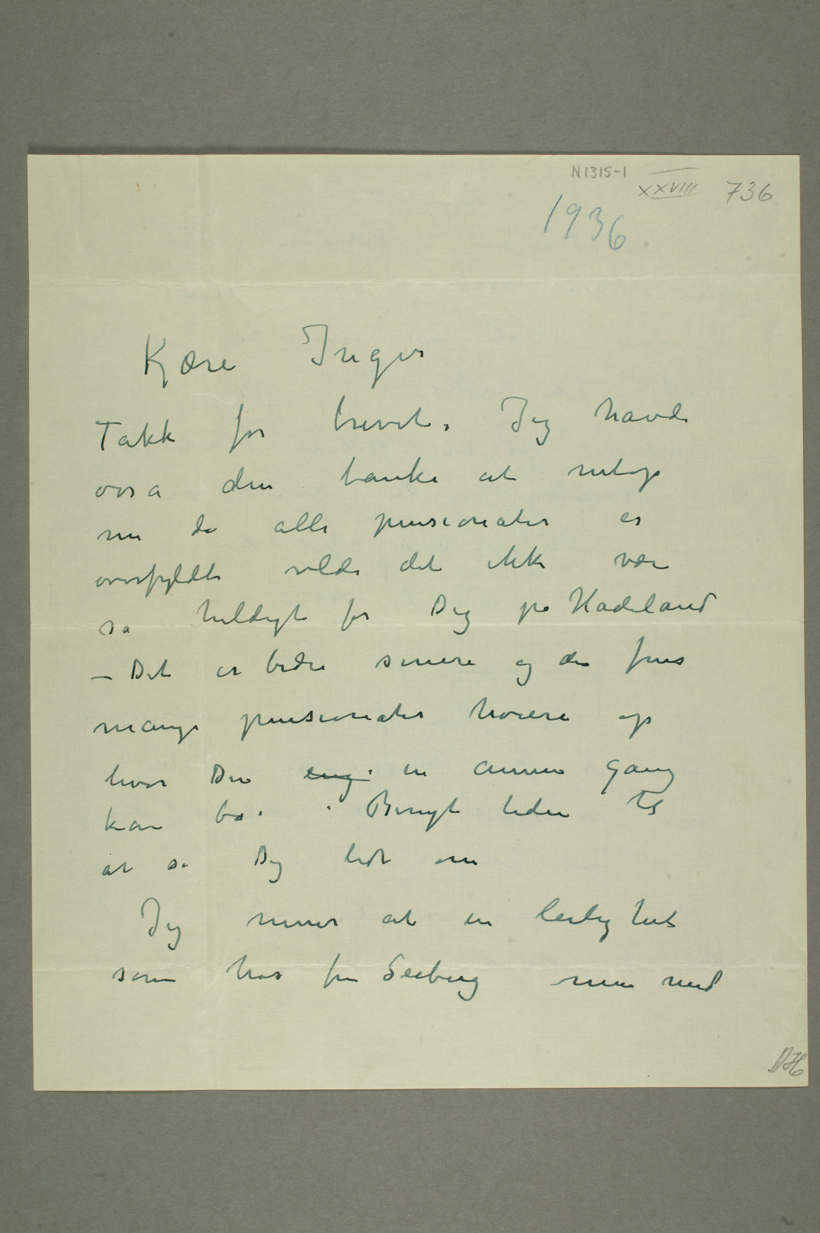 MM N 1315, Munchmuseet. Datert 1932–1940. Brev til Inger Munch