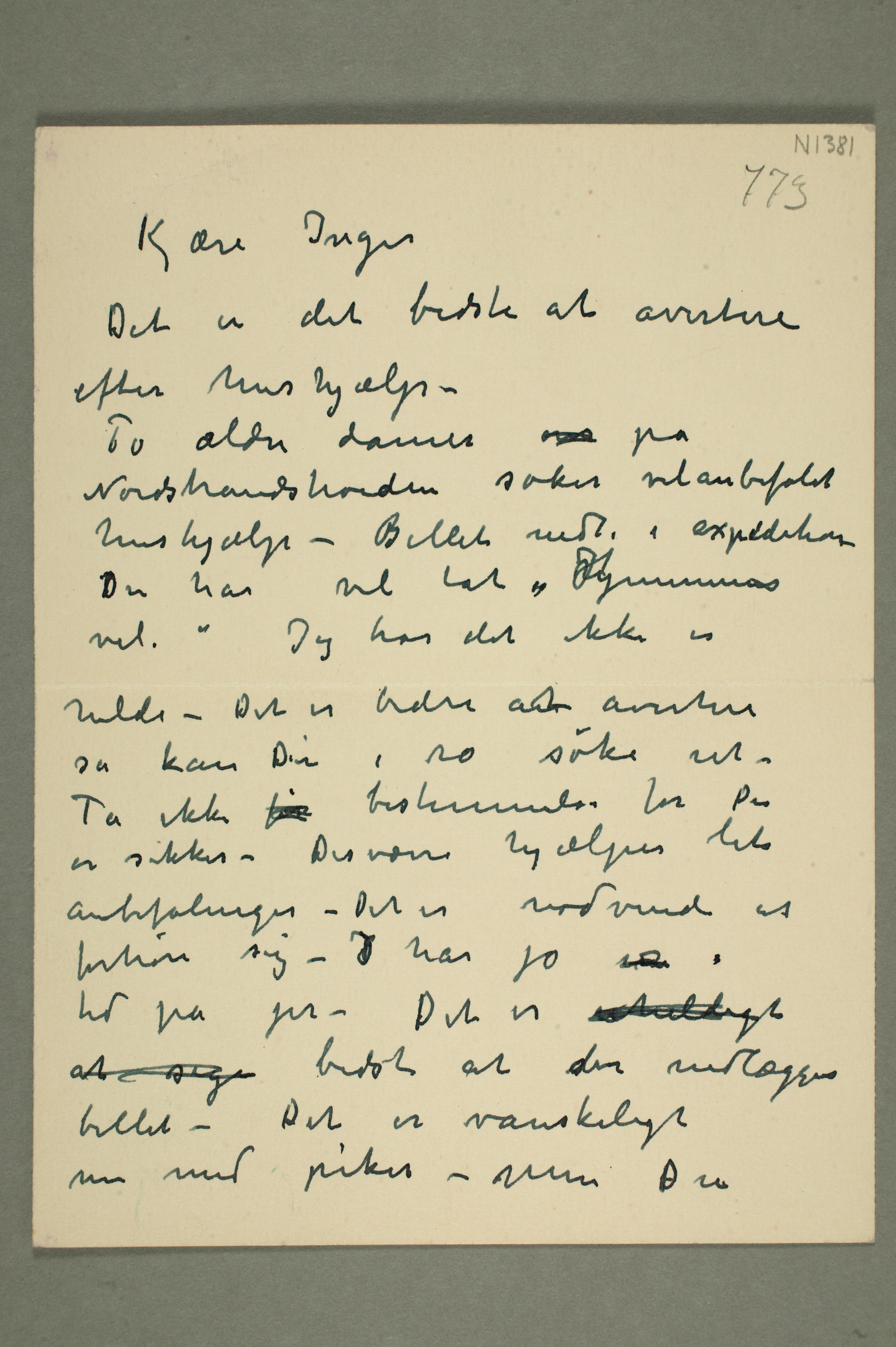 MM N 1381, Munchmuseet. Ikke datert. Brev til Inger Munch