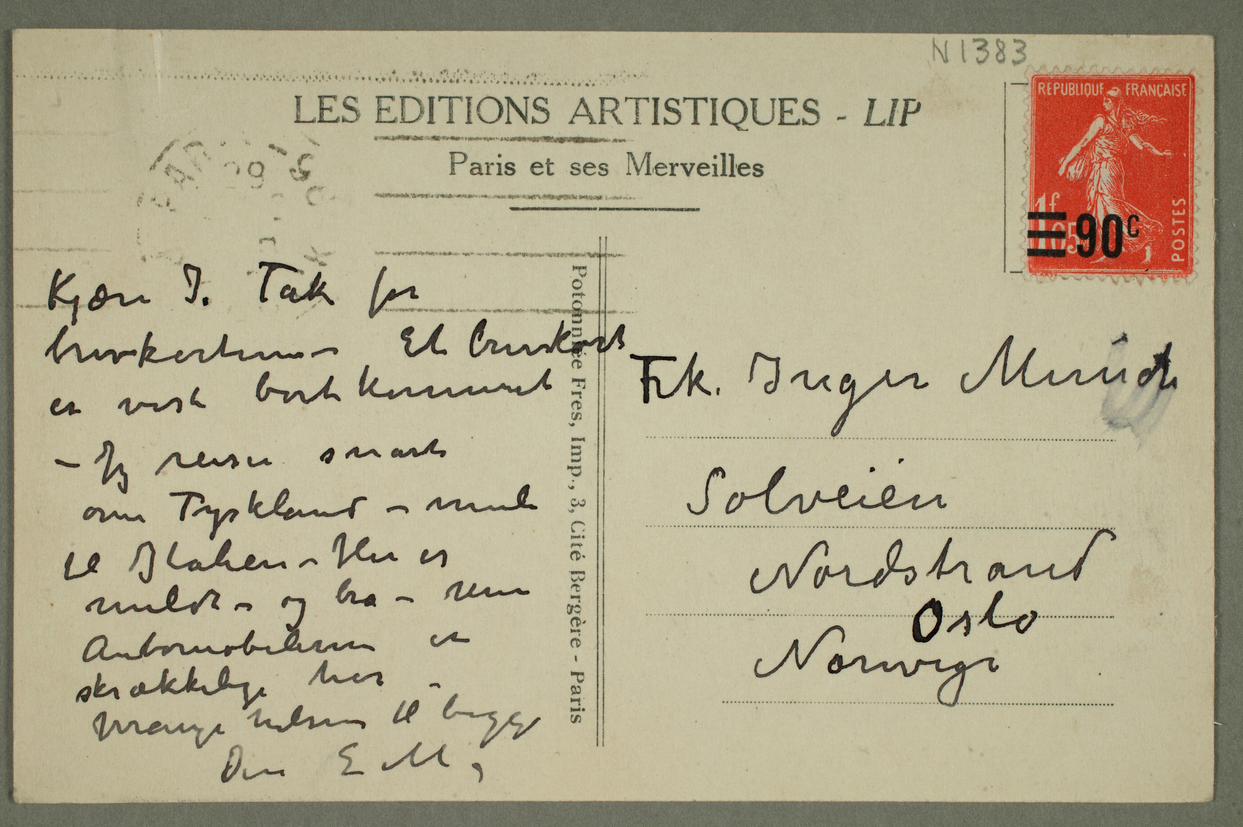 MM N 1383, Munchmuseet. Datert 1929. Brev til Inger Munch