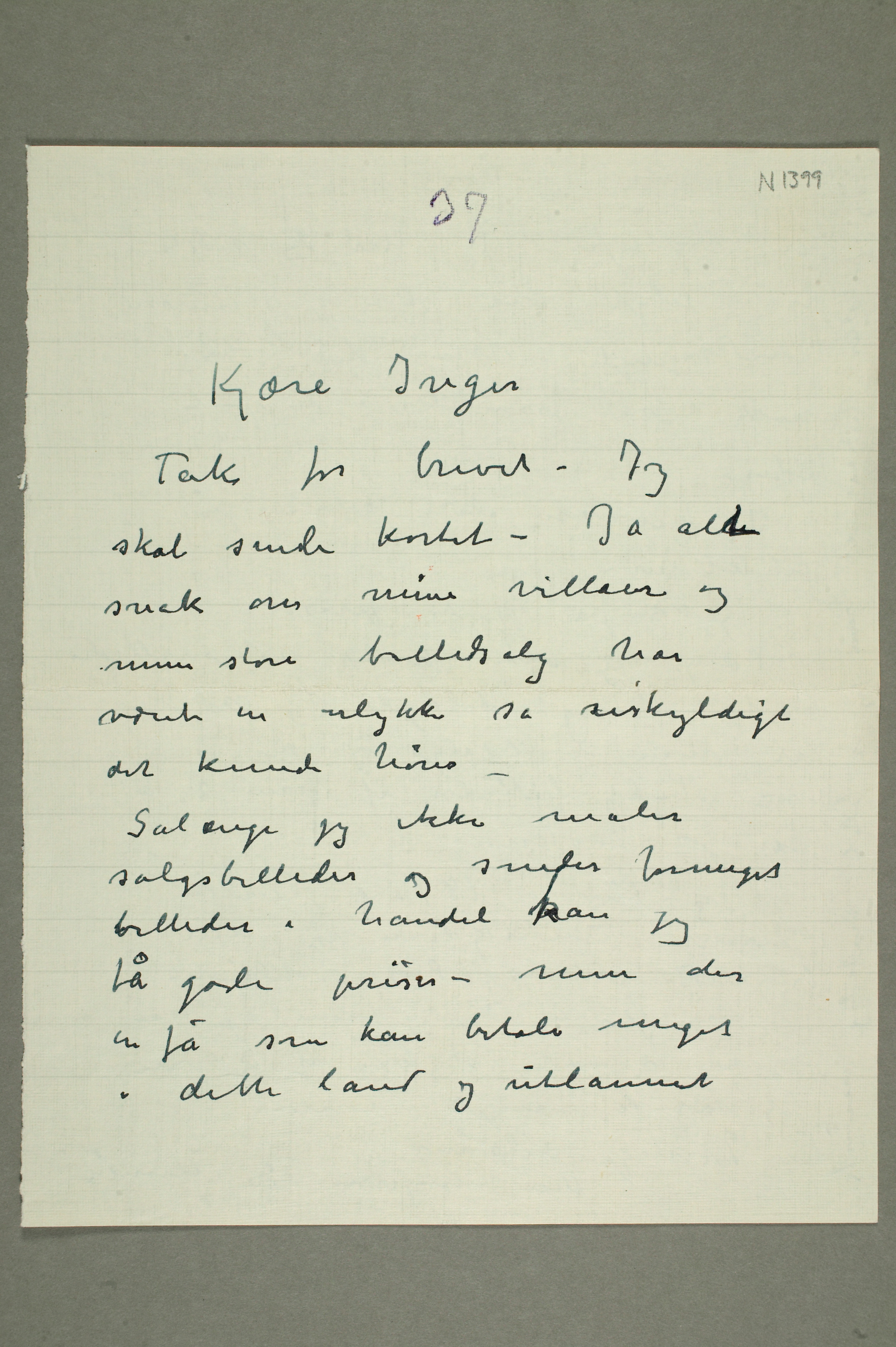 MM N 1399, Munchmuseet. Datert 1937. Brev til Inger Munch