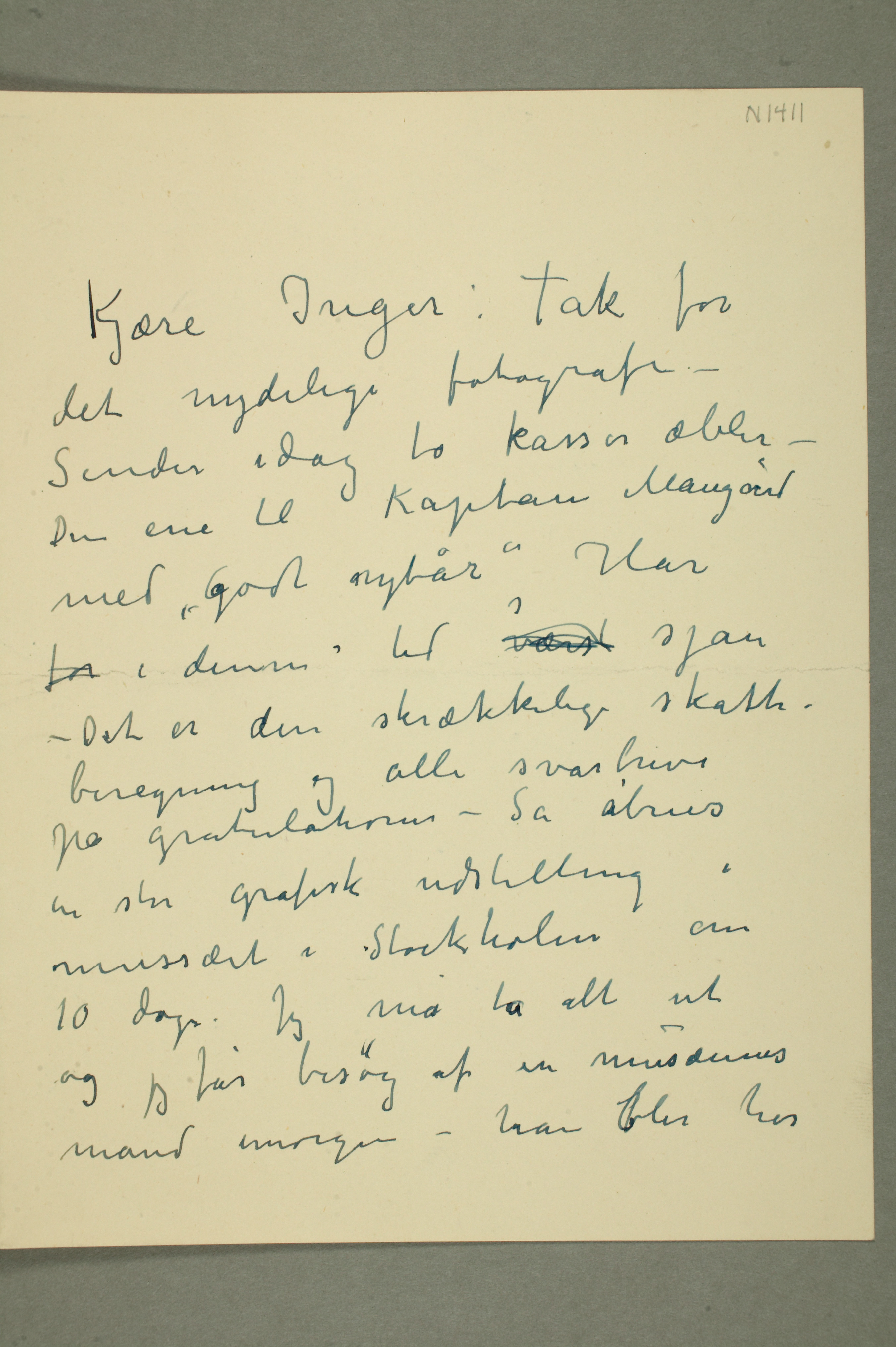 MM N 1411, Munchmuseet. Datert 1929. Brev til Inger Munch