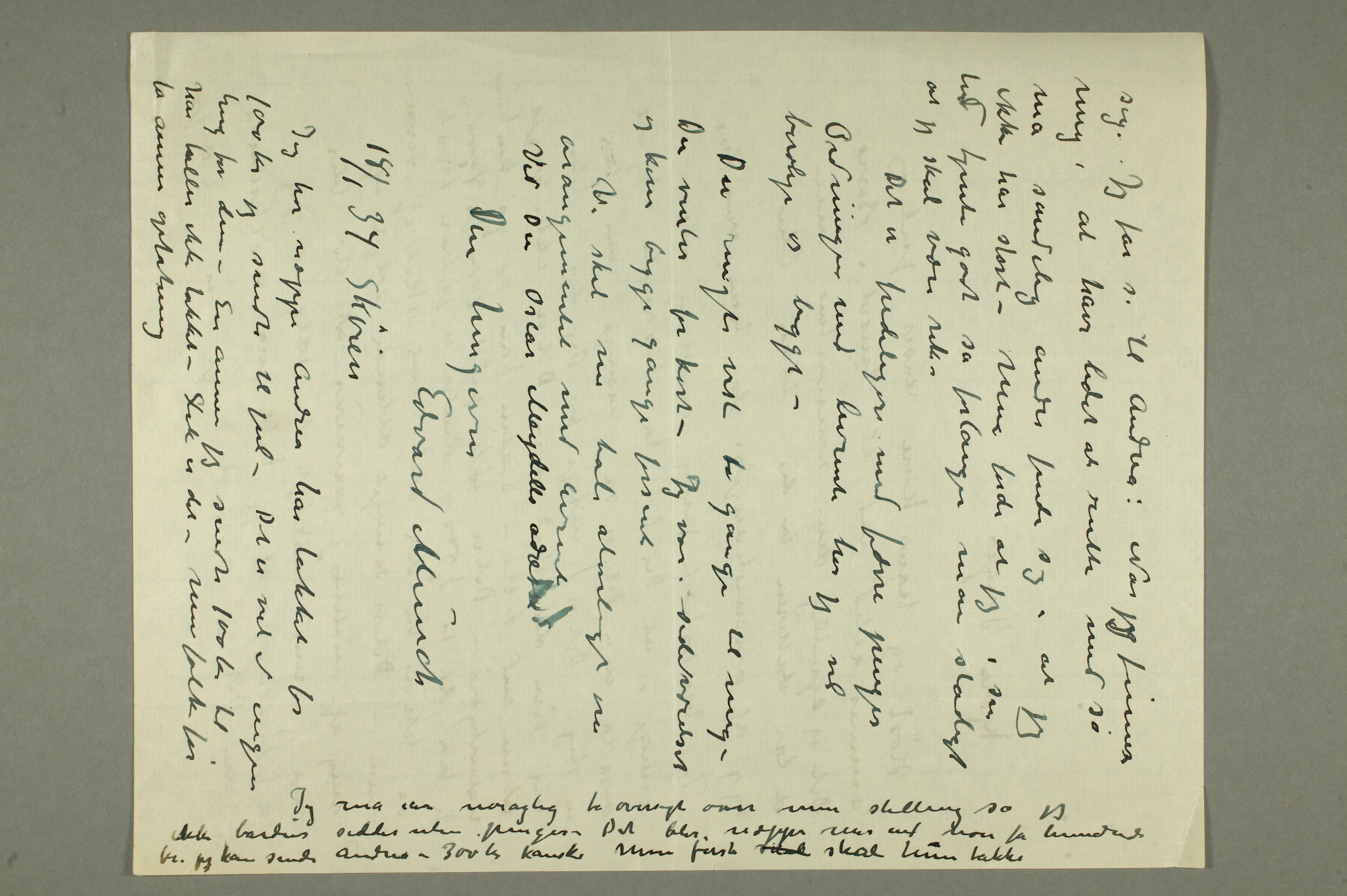 MM N 1419, Munchmuseet. Datert 18.1.1934. Brev til Inger Munch