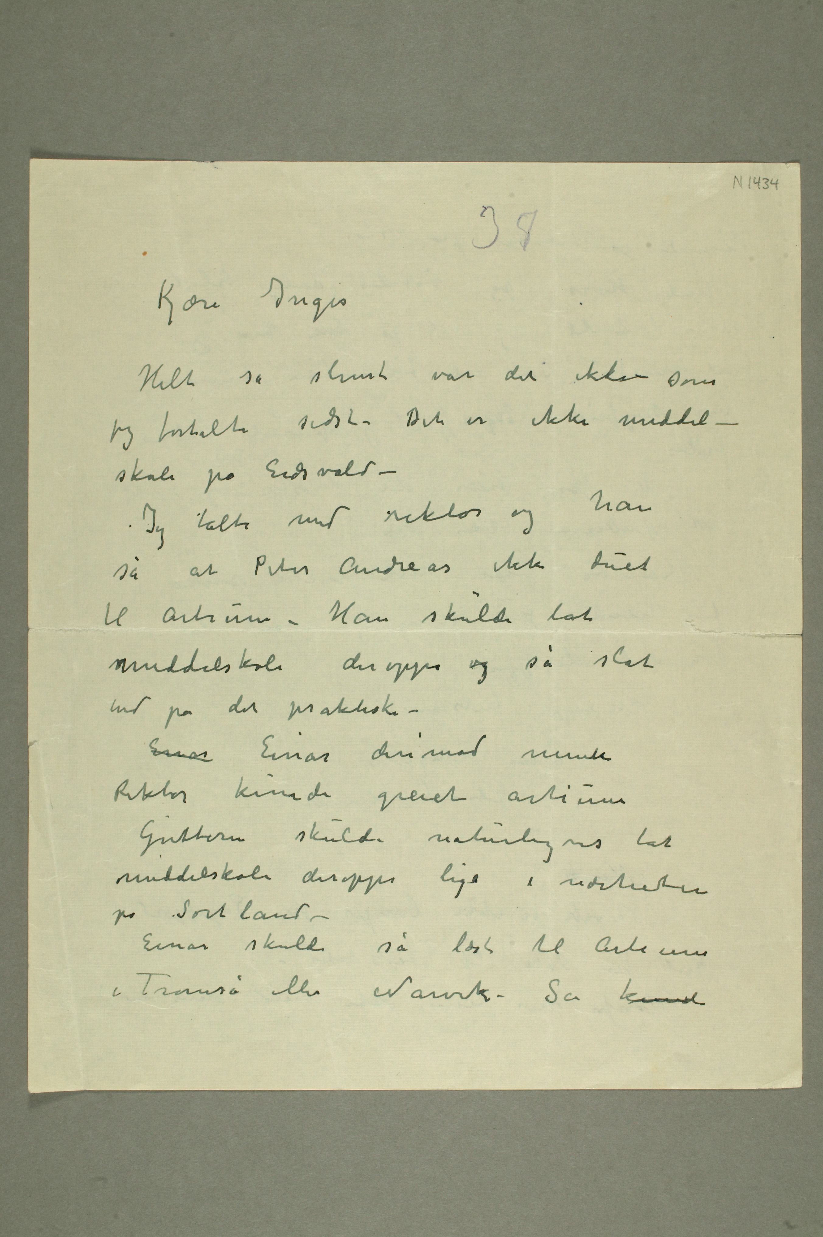 MM N 1434, Munchmuseet. Datert 1938. Brev til Inger Munch