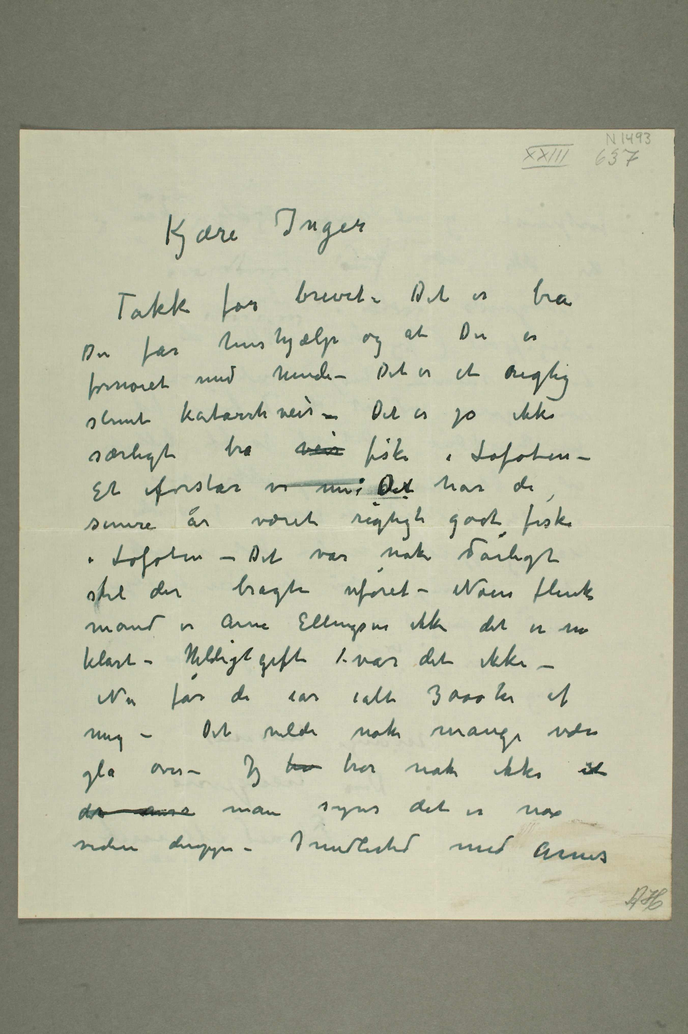 MM N 1493, Munchmuseet. Ikke datert. Brev til Inger Munch