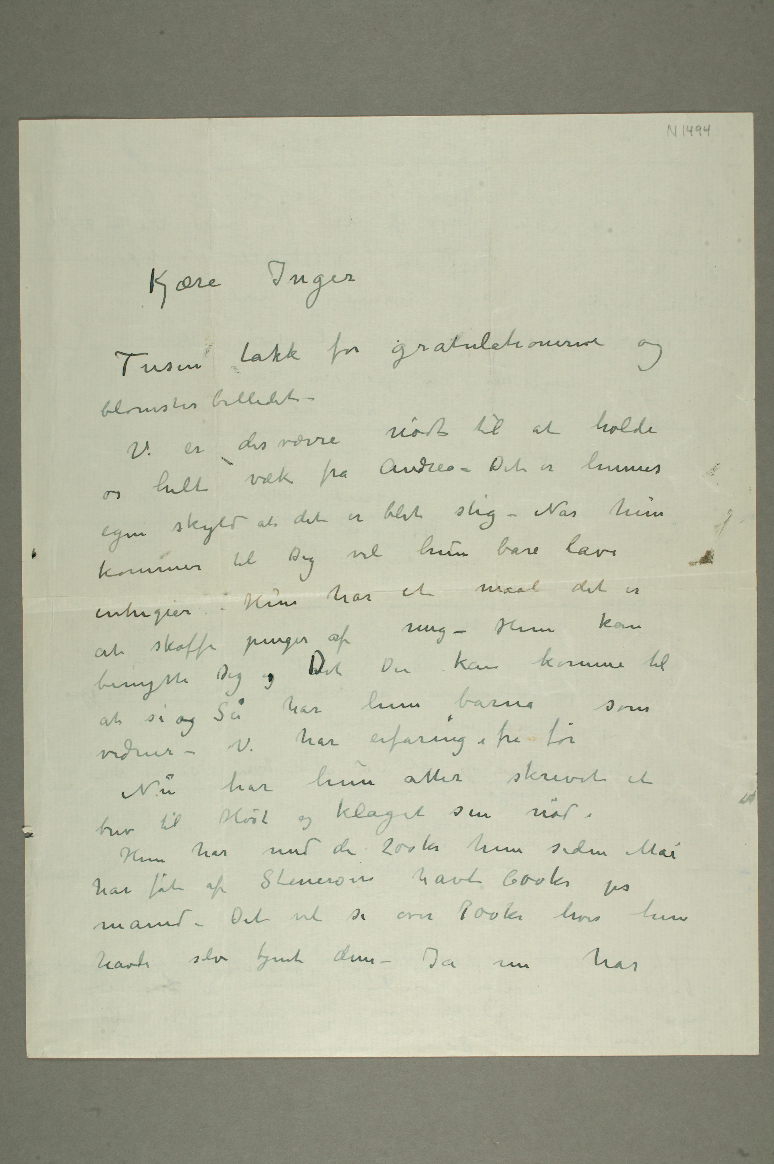 MM N 1494, Munchmuseet. Ikke datert. Brev til Inger Munch