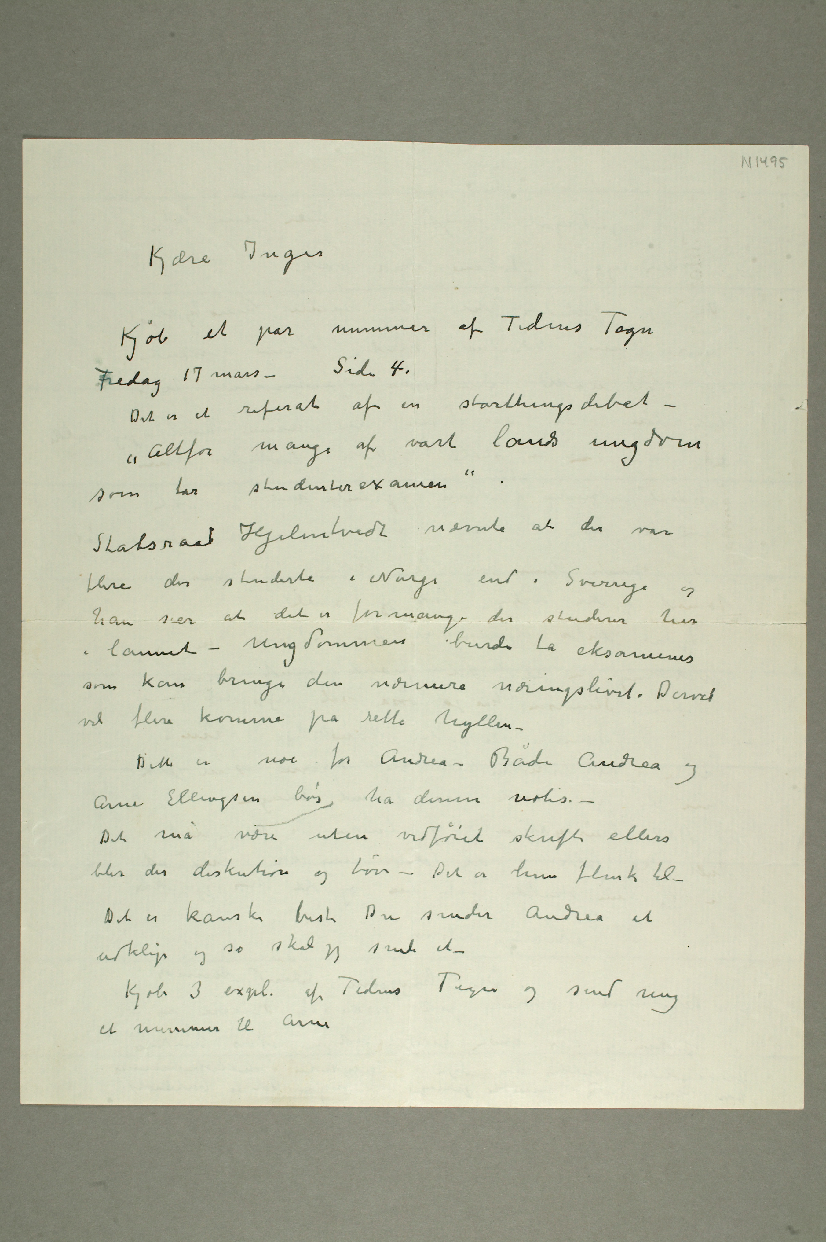 MM N 1495, Munchmuseet. Ikke datert. Brev til Inger Munch